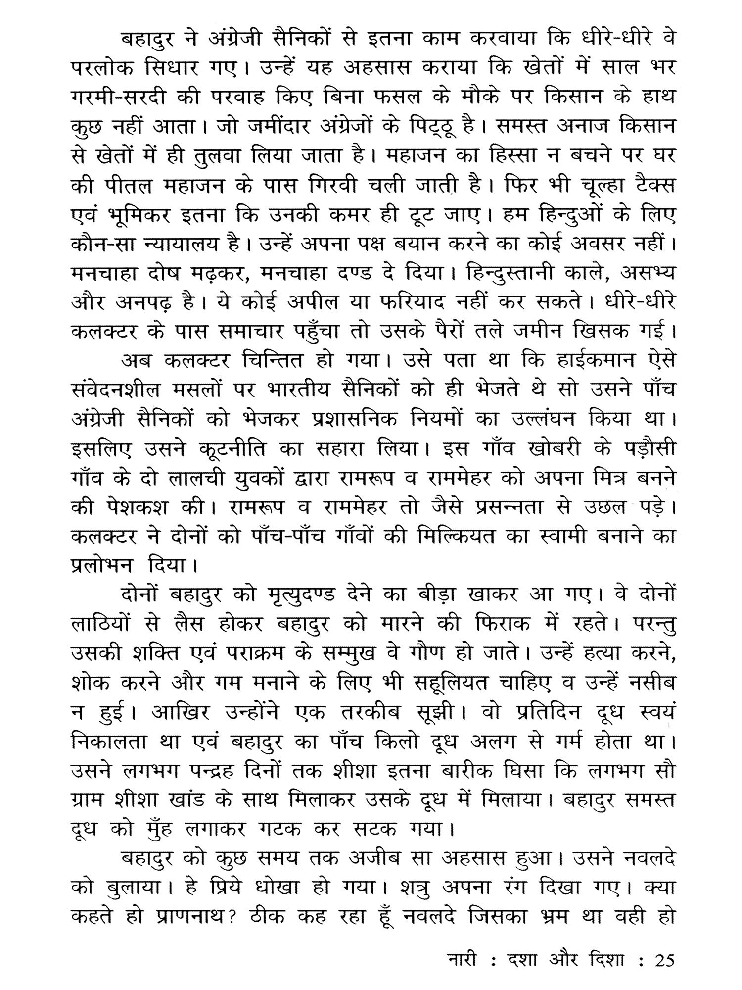 प्रस्तुत उपन्यास सामाजिक यथार्थ की घटनाओं पर आधारित है। इस उपन्यास में परतन्त्र भारत के उतरते समय में एक उच्च वर्गीय परिवार की समाज में आदर्श स्वरूप विकसित करने की चेष्टा को मूर्त रूप दिया गया है। अक्सर ऐसा प्रकट किया गया कि उच्च कुल द्वारा दलित बिरादरियों का शोषण किया गया परन्तु इसमें एक ऐसे कथानक का अन्वेषण किया गया है जहाँ उच्च कुल में उत्पन्न एक पात्र दलित अथवा कमजोर आर्थिक स्थिति से जूझते लोगों को अपना पूर्ण समर्थन करता है। उसके इस प्रकार के कृत्यों का विरोध उसके अपने नजदीकी करते हैं।