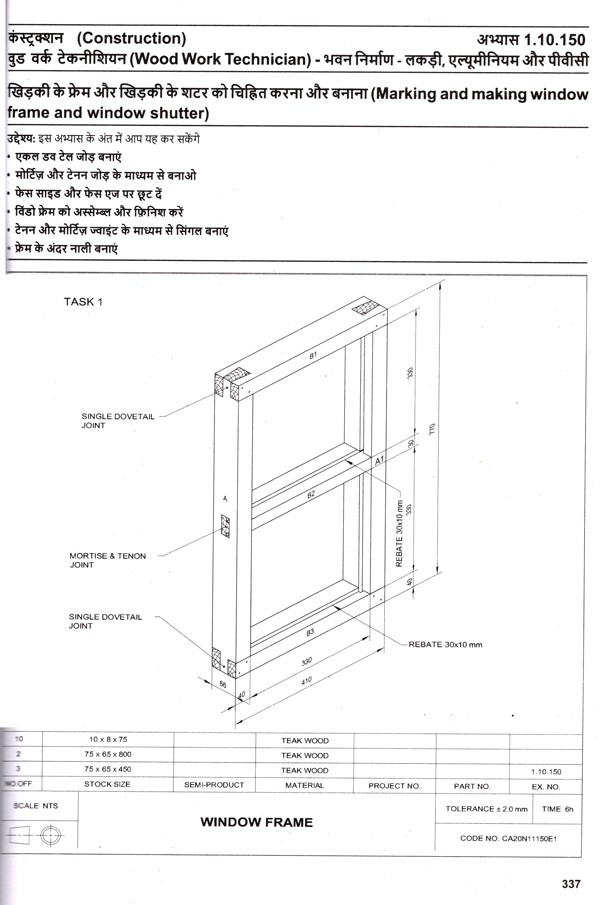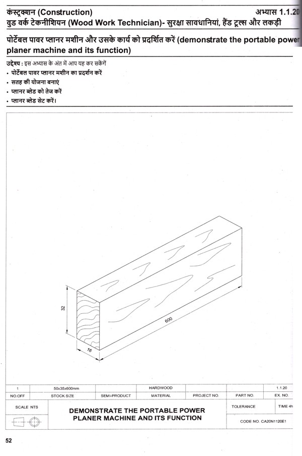 वुड वर्क टेक्नीशियन: Wood Work Technician (Trade Theory, NSQF Level-3, As Per Revised Syllabus July 2022-1200 hrs)
