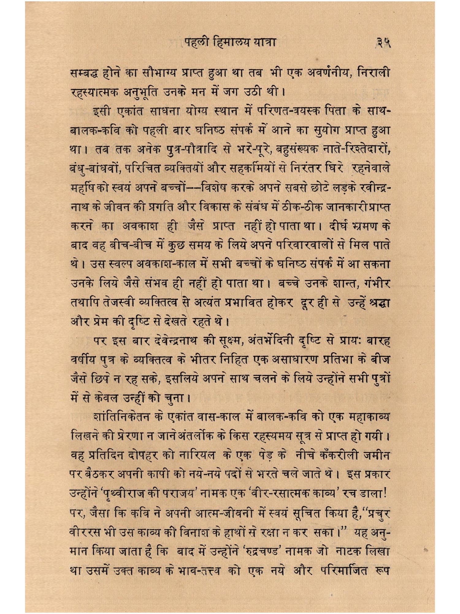 रवीन्द्रनाथ अनेक अर्थों में अद्वितीय थे। उनके मस्तिष्क की सृजनात्मक उर्वरा शक्ति अद्वितीय थी। नौ वर्ष की अवस्था में उन्होंने कविता लिखना आरंभ कर दिया। १२-१३ वर्ष की अवस्था में उन्होंने 'पृथ्वीराज पराजय नामक नाटक लिखा और शेक्सपियर के 'मैकवेध' का बंगला में अनुवाद किया। उसके पश्चात बंगला साहित्य का कोई भी अंग उनसे अछूता नहीं रह गया। उन्होंने उसके प्रत्येक अंग को अपनी प्रतिभा से सुशोभित किया।