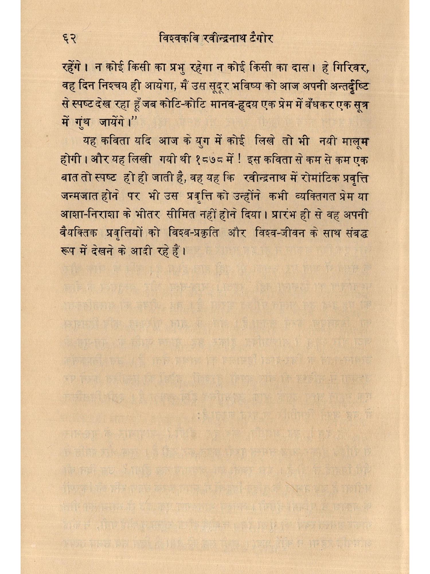 इलाचन्द्र जोशी एक पीढ़ी से रवीन्द्रनाथ की रचनाओं एवं उनके दर्शन के विद्यार्थी रहे हैं। आपने उनका गहरा अध्ययन किया है और प्रस्तुत पुस्तक उसी का परिणाम है। इस पुस्तक को पढ़ने से ऐसा जान पड़ता है कि मानों लेखक रवीन्द्रनाथ के चिर साथी रहे हैं और वे उन्हें बड़े निकट से जानते थे। मुझे पूर्ण विश्वास है कि हिन्दी प्रेमी जनता इस पुस्तक का स्वागत करेगी।