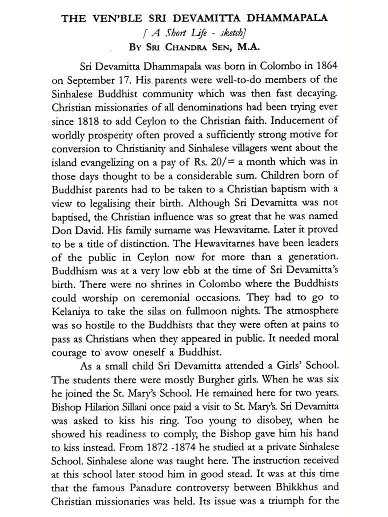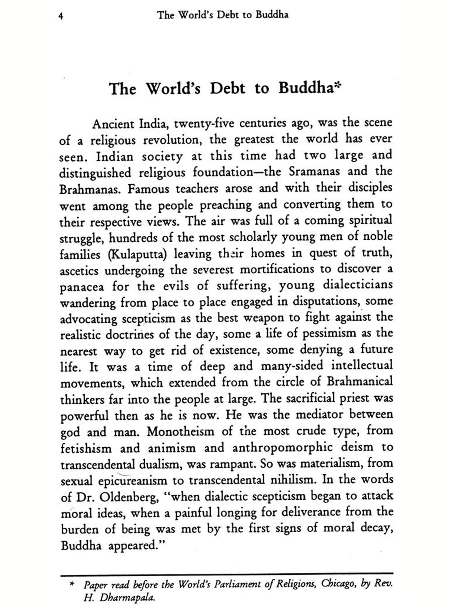 Anagarika Dharmapala's Address in World Parliament of Religions Held in Chicago in 1893