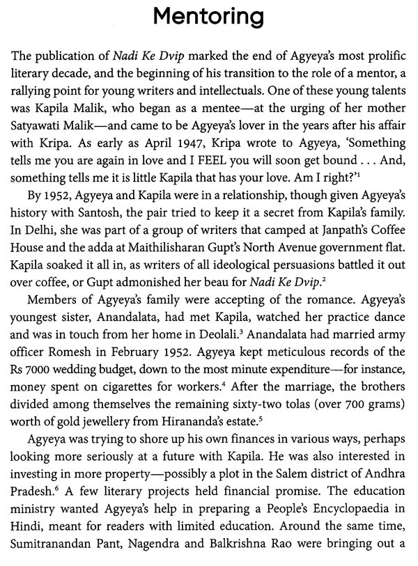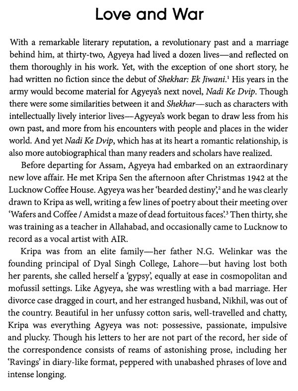 By the age of thirty-four, Sachchidanand Hirananda Vatsyayan 'Agyeya' had been a revolutionary, jailed for fighting for Indian independence, and a captain in the British Indian Army, driven by anti-fascist ideals during the Second World War. He had behind him one marriage that had been a mistake and a passionate love affair. He had been the editor of a prestigious literary journal and the author of a beloved two-part novel, and he was about to publish a hallmark anthology that would usher in a new poetry movement in Hindi.