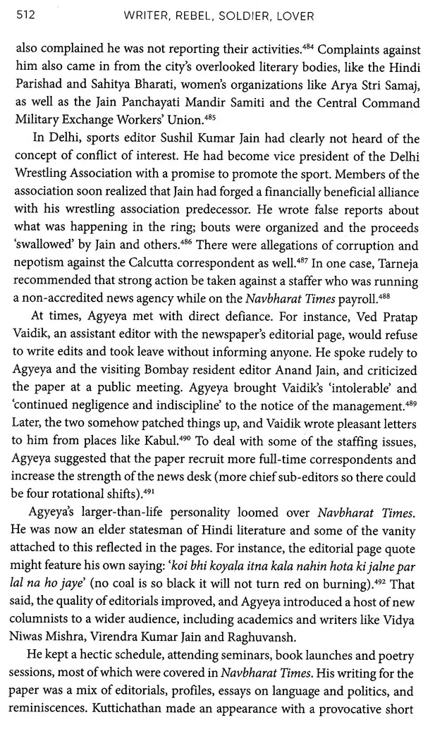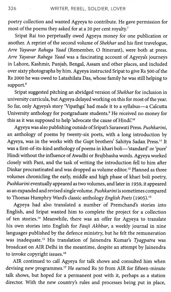 Writer, Rebel, Soldier, Lover features a formidable cast of characters: from writers like Premchand, Phanishwarnath Renu, Raja Rao, Mulk Raj Anand and Josephine Miles to Prime Minister Jawaharlal Nehru, revolutionary Chandra Shekhar Azad and actor Balraj Sahni. And its landscapes stretch from British jails, an intellectually robust Allahabad and modern-day Delhi to monasteries in Europe, the homes of Agyeya’s friends in the Himalayas and universities in the US. This book is a magnificent examination of Agyeya’s civilizational enterprise.