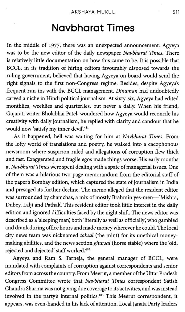 Akshaya Mukul’s comprehensive and unflinching biography is a journey into Agyeya’s public, private and secret lives. Based on never-seen-before archival material-including a mammoth trove of private papers, documents of the CIA-funded Congress for Cultural Freedom and colonial records of his years in jail-the book delves deep into the life of the nonconformist poet-novelist. Mukul reveals Agyeya’s revolutionary life and bomb-making skills, his CIA connection, a secret lover, his intense relationship with a first cousin, the trajectory of his political positions, from following M.N. Roy to exploring issues dear to the Hindu right, and much more. Along the way, we get a rare peek into the factionalism and pettiness of the Hindi literary world of the twentieth century, and the wondrous and grand debates which characterized that milieu.