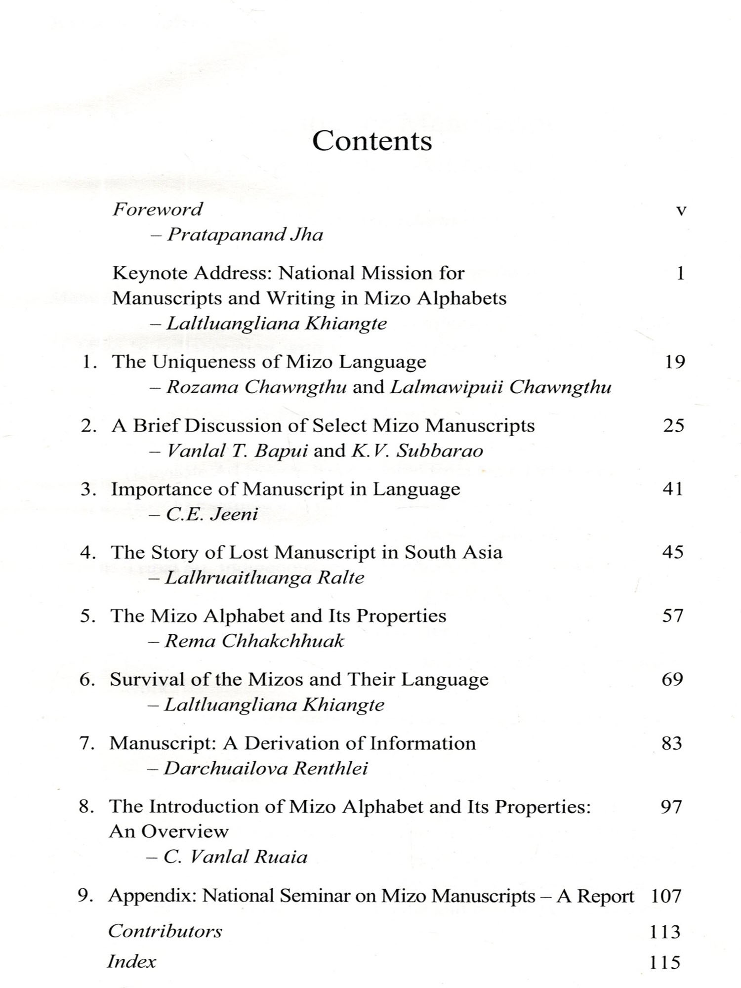 This volume talks about the uniqueness of Mizo language; select Mizo manuscripts, importance of manuscripts in a language; story of lost manuscript; Mizo alphabet and its properties; among a few more interesting topics.