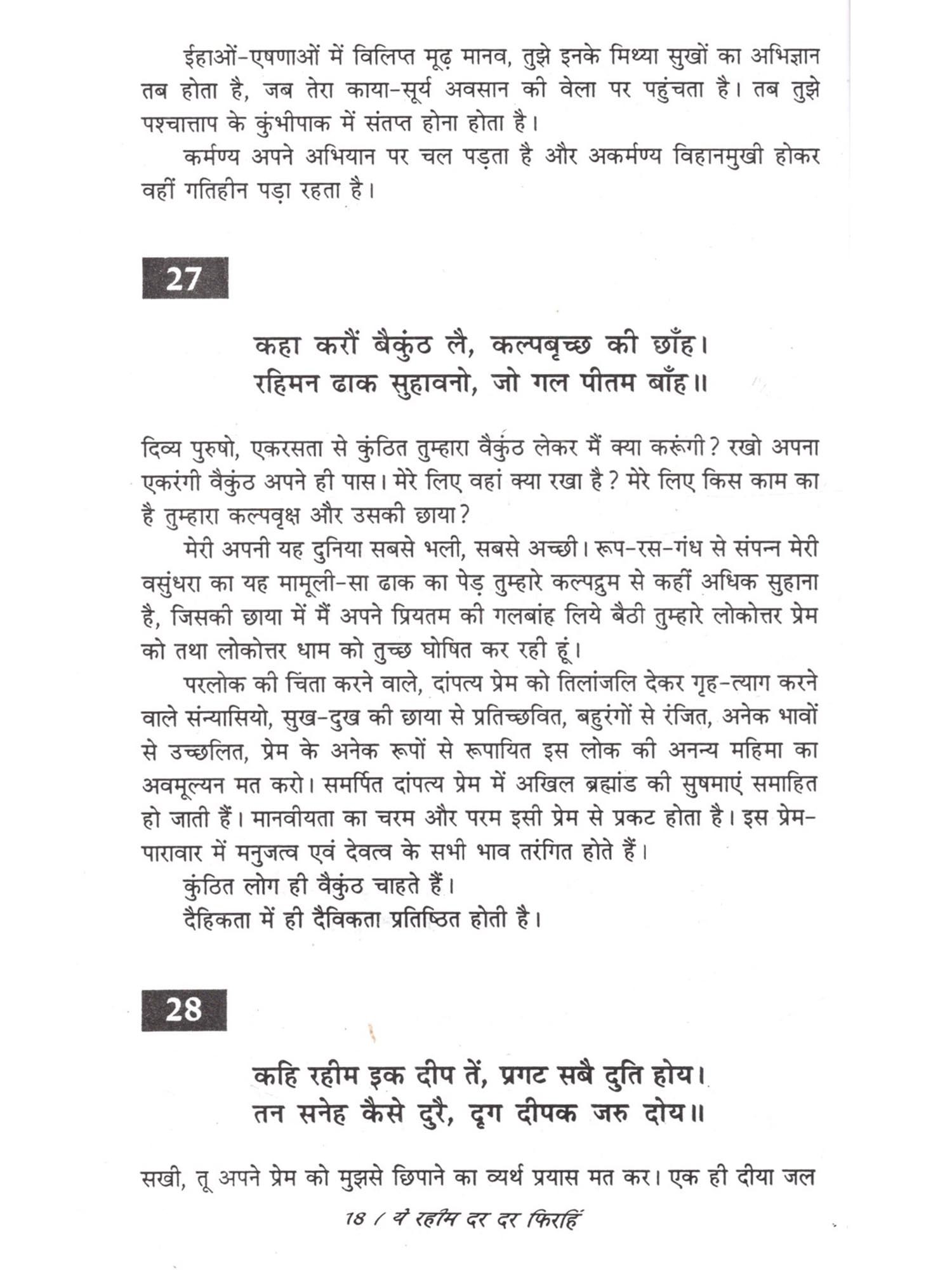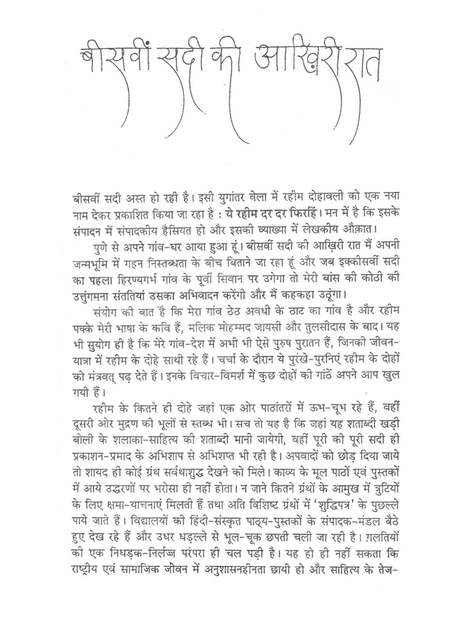 रहीम दोहावली का दूसरा नाम है। इसके संपादन में संपादकीय हैसियत और इसकी व्याख्या में लेखकीय औकात विद्यमान है। दोहावली में कब में फैली अव्यवस्था को दूर किया गया है, एक एक दोहे को मंत्र का पद देकर प्रतिष्ठापित किया गया है तथा वैदिकता प्रदान की गयी है। अभी तक संपूर्ण रहीम दोहावली पर न कोई टीका थी और न कोई व्याख्या। लगभग तीन सौ दोहों में से किसी तरह सी-डेढ़ सौ दोहों पर जो टीकाएं, है भी, में घुलघुल और सपाट हैं। गौरव दोहे अर्थ गौरव की प्रतीक्षा कर रहे थे। प्रस्तुत पुस्तक के माध्यम से पहली बार हिंदी संसार को दोहावली के समग्र दोहों पर जवलंत व्याख्या मिलने जा रही है। लेखक की भाषा शैली से गुजरना अपने आप में एक सुखद अनुभव होगा। ऐसी व्याख्या शायद ही कहीं और मिले। वास्तव में, लेखक ने अपने कवित्व की री में बहकर व्याख्या नहीं, कणिका. ही लिख डाली है। रहीम के ये दोहे हिंदी साहित्य की अमूल्य निधि हैं, जो बीसवीं सदी के राष्ट्रीय जीवन में मूल्यों की पुनस्र्थापना में सहायक सिद्ध होंगे। आशा है, रहीम साहित्य के अध्येताओं तथा सामान्य पाठकों के लिए यह एक अनिवार्य ग्रंथ सिद्ध होगा।