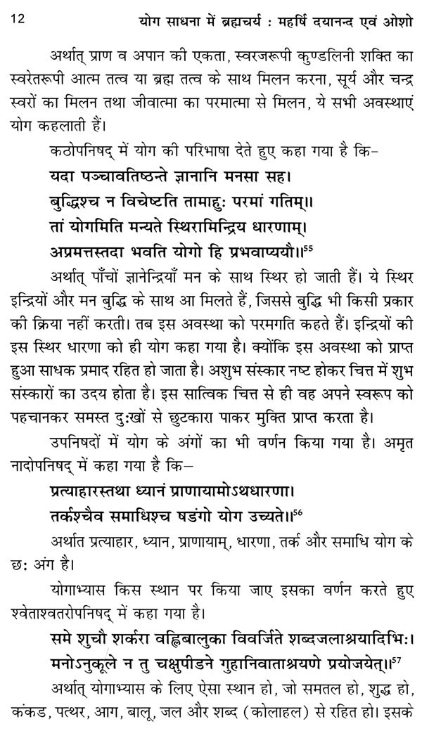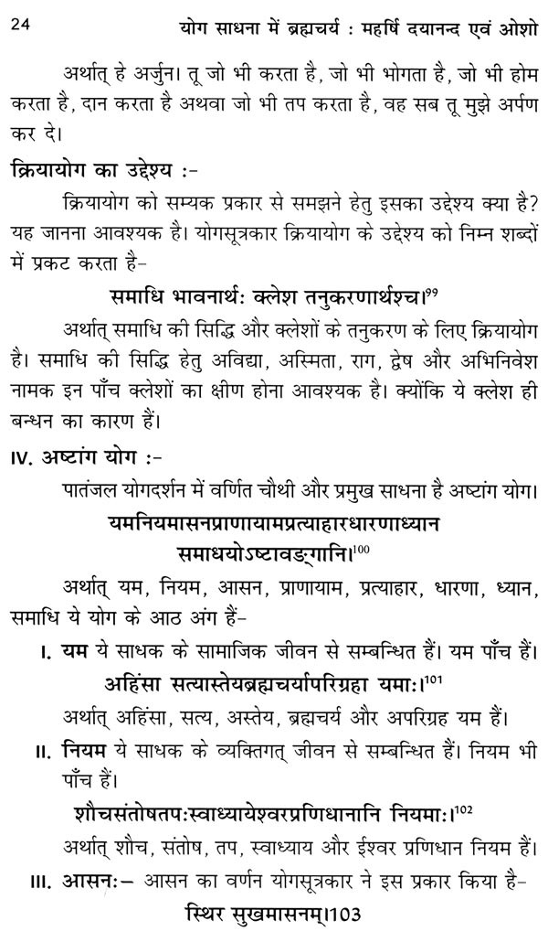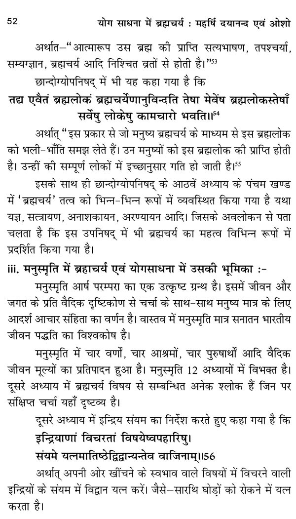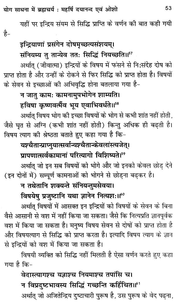 धार्मिक विषयों में मेरी रूचि बाल्यकाल से ही थी। बचपन में टी.वी. पर रामायण और महाभारत सीरियल में राम और कृष्ण के पात्र बड़े प्रिय लगते थे। सम्भवतः तभी से मन में ईश्वर भक्ति और श्रद्धा के भाव जगे होंगें। फिर पारिवारिक संस्कारों के कारण देश, धर्म और संस्कृति के विभिन्न प्रतीकों की मन पर गहरी छाप पड़ी। शिवाजी, महाराणा प्रताप और विवेकानन्द आदि महापुरुषों की बातें मेरे चिंतन को प्रभावित करने लगी। बारहवीं कक्षा तक आते-आते मेरी रूचि आध्यात्मिक भी हो गई और एकान्तवास प्रिय लगने लगा। साथ ही ओशो का साहित्य भी पढ़ना शुरू किया। स्नातक में प्रवेश के लिये जब गुरूकुल कांगड़ी, हरिद्वार आया तो मेरी भेंट दर्शन शास्त्र के प्राध्यापक पू० गुरूदेव डॉ० सोहनपाल सिंह आर्य से हुई, जिनके ओजस्वी व्यक्तित्व ने मुझे सहज ही प्रभावित किया। स्नातक अध्ययन के दौरान ही डॉ० आर्य जी से महर्षि दयानन्द के विचारों और दर्शन को गहराई से समझने का अवसर मिला। ऐसे में दो विचारधाराएं मेरे चिंतन में समानान्तर चलती रहीं। एक महर्षि दयानन्द की वैदिक विचारधारा और दूसरी ओशो की तांत्रिक विचारधारा। योगविज्ञान विषय में एम. ए. करने के पश्चात् मैनें इन दोनों विचारधाराओं पर ही शोधकार्य करने के बारे में सोचा और प्रभु कृपा से मुझे डॉ० आर्य जी के निर्देशन में "योग साधना के परिप्रेक्ष्य में महर्षि दयानन्द सरस्वती और आचार्य रजनीश ओशो के ब्रह्मचर्य सम्बन्धी विचारों का समीक्षात्मक अध्ययन" नामक विषय पर शोध करने का सौभाग्य मिला। परमपिता परमेश्वर की कृपा और गुरूदेव के आशीर्वाद से यह शोध कार्य पूर्ण हुआ। जिसके लिये मैं सर्वप्रथम परमात्मा का स्मरण करते हुए अपने शोध-निर्देशक पूज्य गुरूदेव डॉ० सोहनपाल सिंह आर्य जी का आभार व्यक्त करता हूँ। जिन्होने अपनी ज्ञान रश्मियों से समय-समय पर मेरे अन्तःकरण के अज्ञानरूपी अन्धकार का छेदन किया। यूं तो मुझे अपने जीवन में बहुत से विद्वानों का सानिध्य मिला, किन्तु जीवन और जगत के सम्बन्ध में जैसी गहरी और स्पष्ट 'एप्रोच' डॉ० आर्य जी की है, वैसी कहीं और देखने को नहीं मिली। वेद, उपनिषद्, मनुस्मृति, गीता और योगसूत्र से लेकर सुकरात, शंकर, दयानन्द, मार्क्स और गांधी तक जो भी कल्याणकारी है वह सब आपने आत्मसात किया है। न केवल इस शोधकार्य में पूर्ण सहयोग के लिये, अपितु मेरे जीवन को एक 'विजन' देने के लिये मैं पूज्य गुरूवर को उनके अमूल्य मार्ग दर्शन हेतु पुनः नमन करता हूँ।