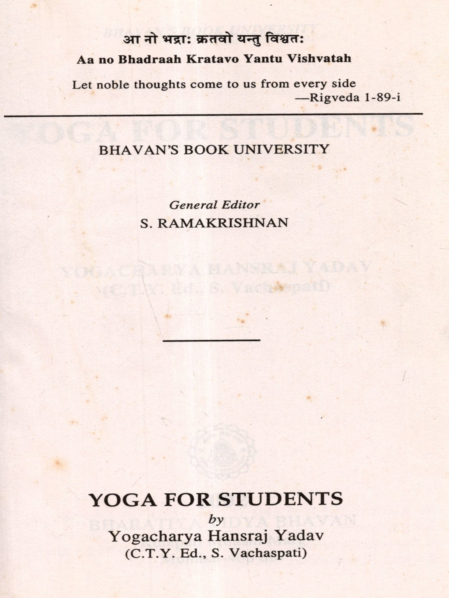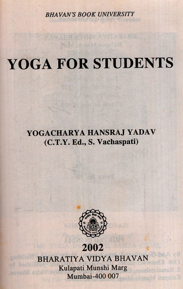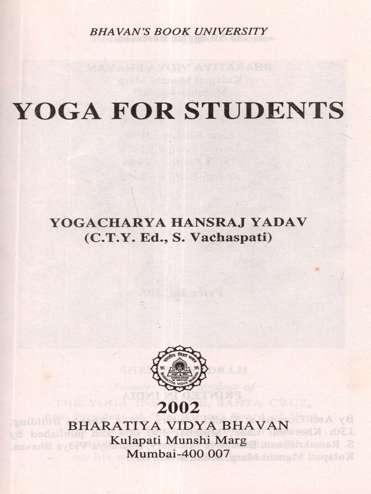 Yogacharya Hansraj Yadav has done modest effort by bringing out the book of YOGA FOR STUDENTS based on Yoga syllabus formulated by State Government for the use of school going children. Shri Yadav has a knack of putting yoga and details of its practices, in a very lucid and attractive manner. I am sure this book shall be received warmly by the student world and shall be of use to them as a key to Yoga for the better and healthy living.