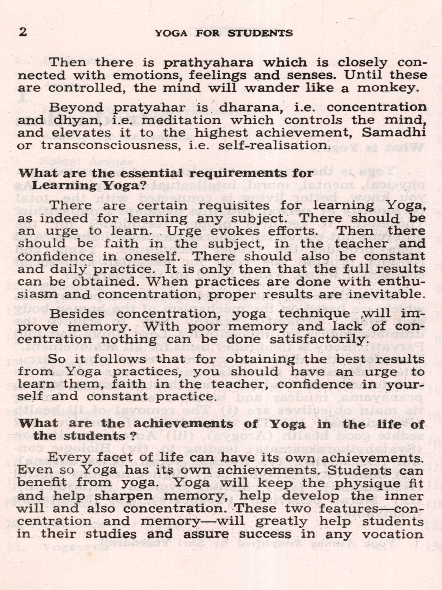 Under the guidance of Gurudev Shri Yogendraji, Mother Sita Devi and Dr. Jayadev, Principal of the Yoga Teacher Training Institute, Santa Cruz, All India Board of Yoga has been formulated. The Board has prepared and recommended the simple syllabus of Yoga for students and householders. The purpose of this syllabus is to impart the correct and ideal knowledge of integral system of total yoga for the development of integrated personality. The does not make the people become a yogi but behave like a yogi and initiate themselves into having real qualities of yoga students.