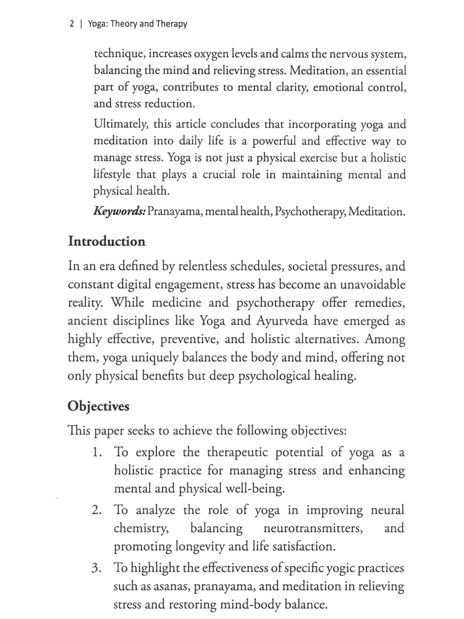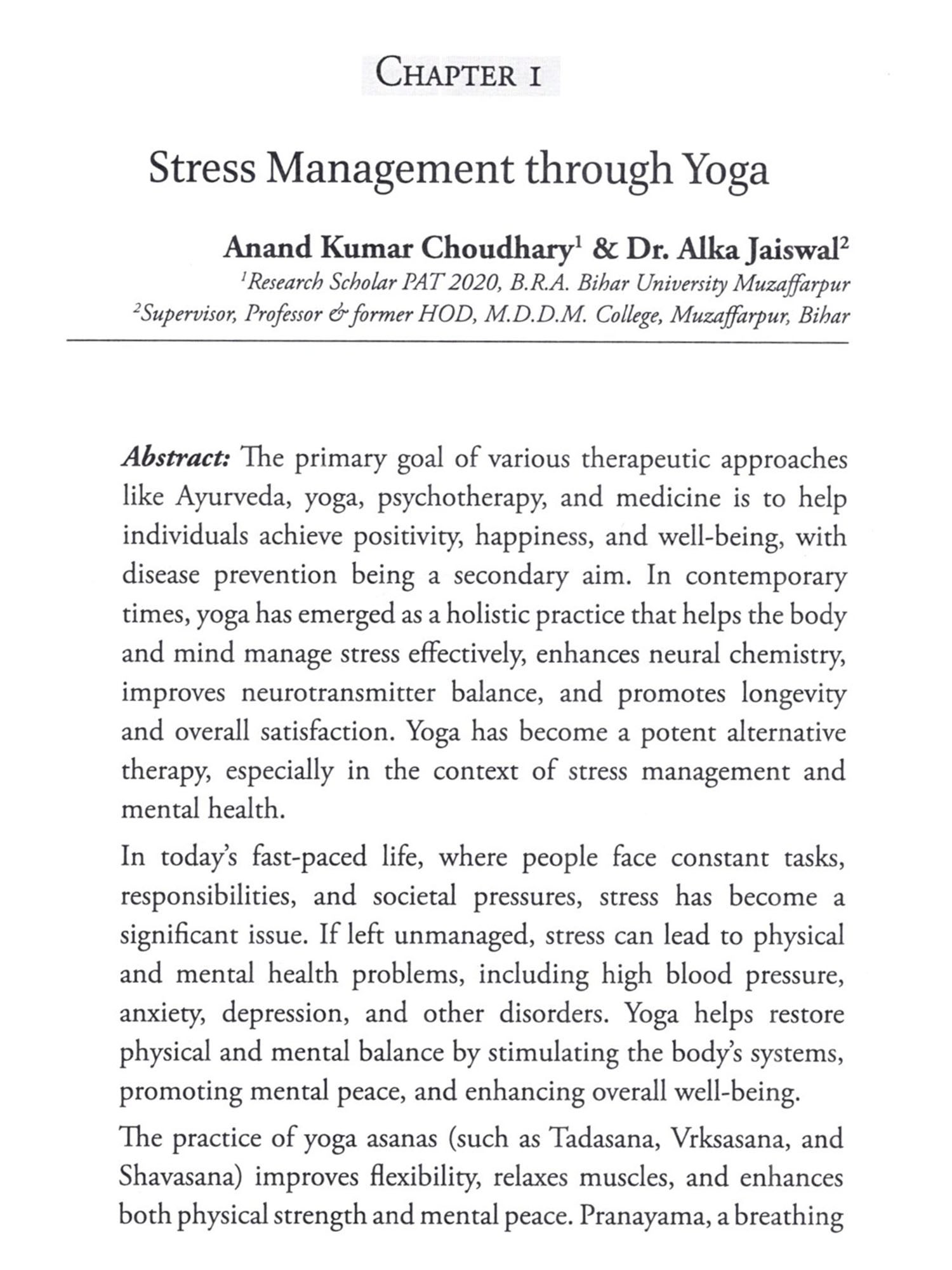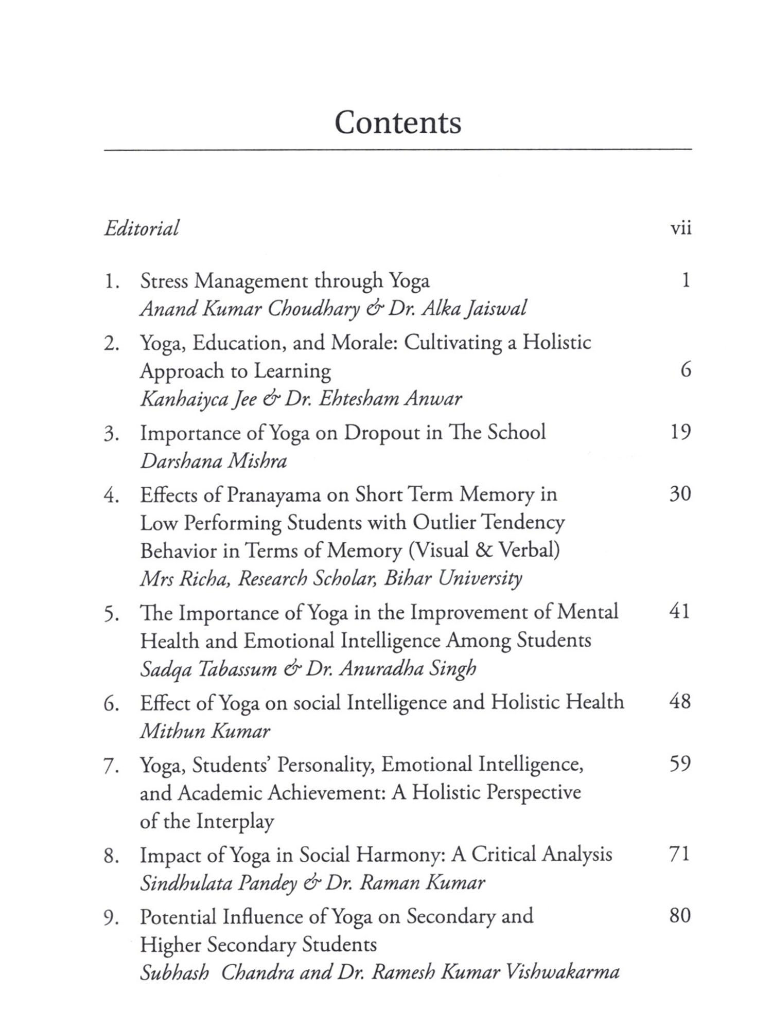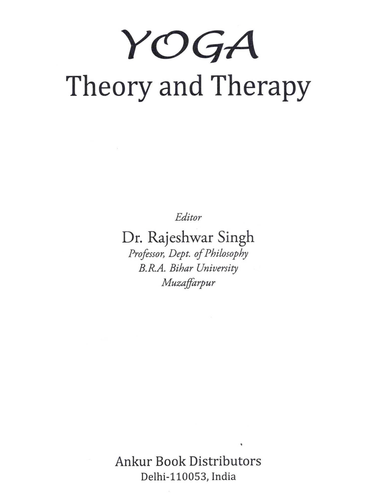 Yoga is a dynamic philosophy which supports life, action, aspiration, quest for truth and a path which unshackles the infinite potential of the human mind and helps one be one with the supreme. Yoga therapy is a type of therapy which encourages the integration of mind, body and spirit. The present work is collection of research papers which are presented by eminent scholars in the national seminar held at Dept. of Philosophy B.R.A.B. University Muzaffarpur.
