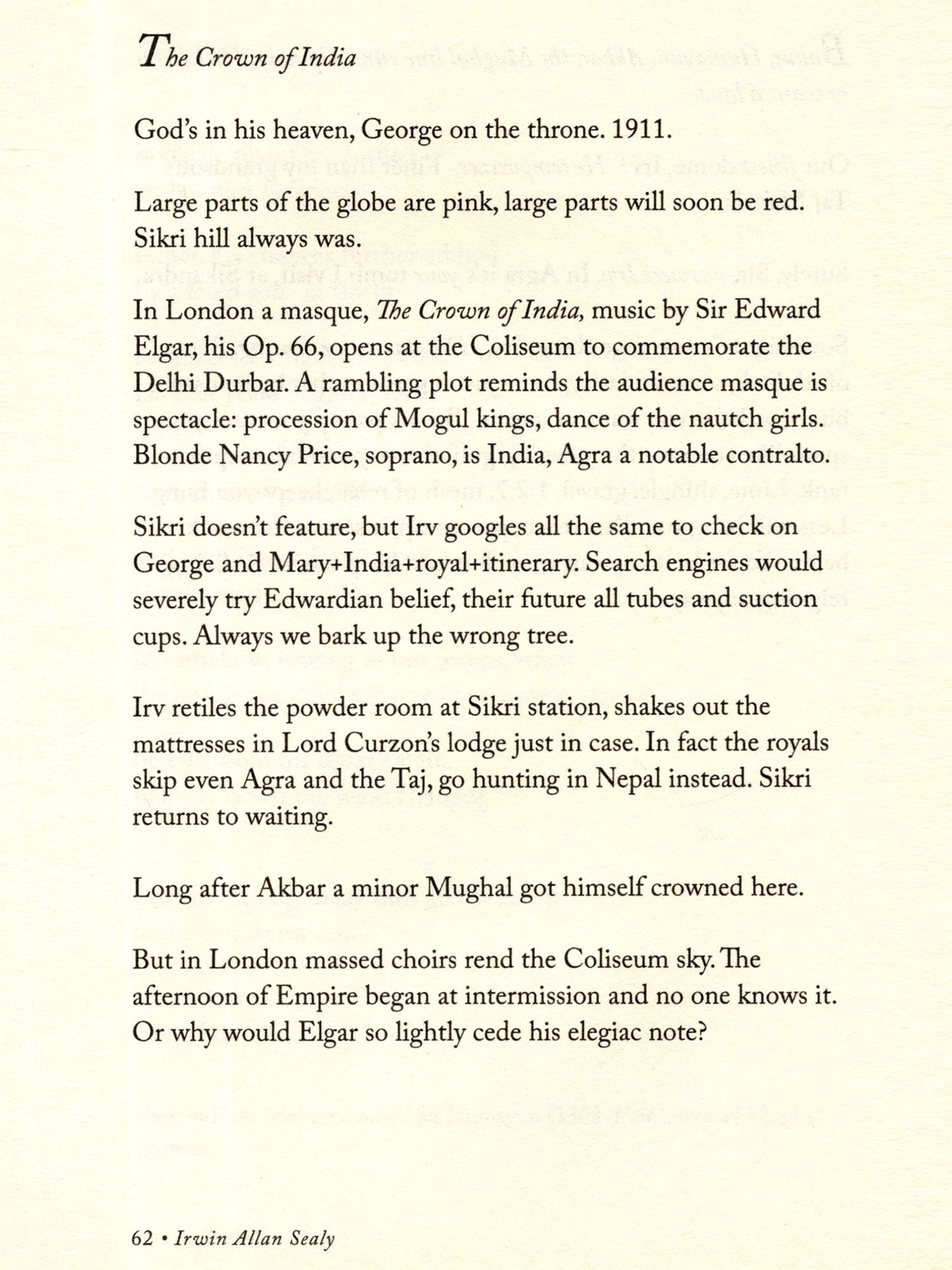 Irwin Allan Sealy was born in Allahabad and educated in Lucknow and Delhi. He is the author of The Trotter-Nama, The Everest Hotel, The Brainfever Bird, and other novels, and the travelogues From Yukon to Yucatan and The China Sketchbook. A memoir, The Small Wild Goose Pagoda, is set in Dehra Dun where he lives.