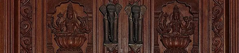 Different architectural styles, such as solid and decorative beams, simple beams, and beams with geometric work, all contribute to the aesthetics. The door handles, which are used for decoration, include a variety of motifs ranging from animal heads to mythical creatures such as Naga Kanyas. Spikes, known traditionally as Dwara Palakas (Guards), may also be used on the doors to protect them against animal and intruder collisions.