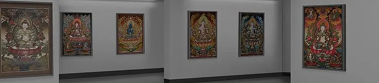 Thangkas are traditional Buddhist paintings that are made on cotton or silk fabric and are hung on the walls of Tibetan Buddhist temples and monasteries for decoration and prayer purposes. They depict the pictures of the Buddha and the Bodhisattva in a meditating state, which the Buddhist Vajrayana devotees use as a guide to increase the absorption in their meditation practices.