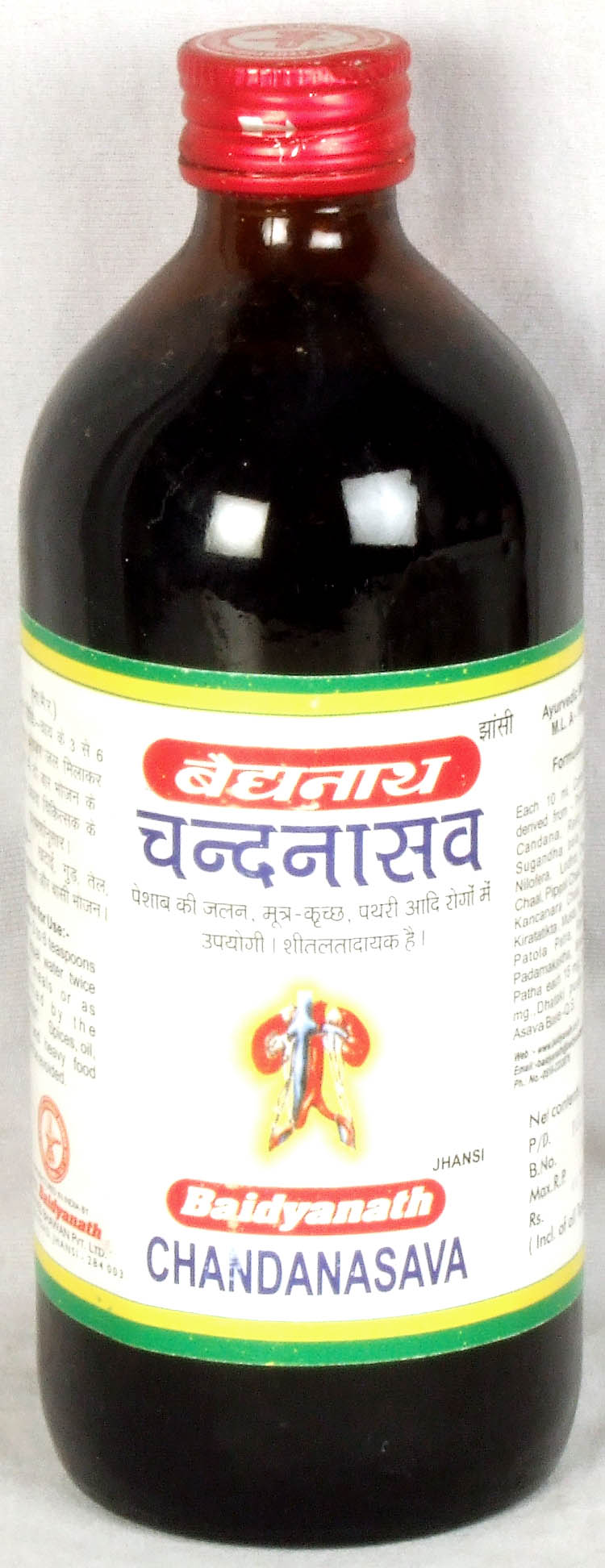 Each 10 ml. Contains extract derive from – Priyangu, Sveta Candana, Rakta Candana, Sugandha bala, Gambhari, Nilofera, Lodhra Chaal, Vata Chaal, Pippali Chaal, Amra Chaal, Kancanara Chaal, Manjistha, Kiratatikta, Musta, Yasti, Parpata, Patola Patra, Rasna, Sati, Padamakastha, Mocarasa, and Patha each 15 mg., Draksa 350 mg., Dhataki puspa 240 mg. Asava Base-Q.S.