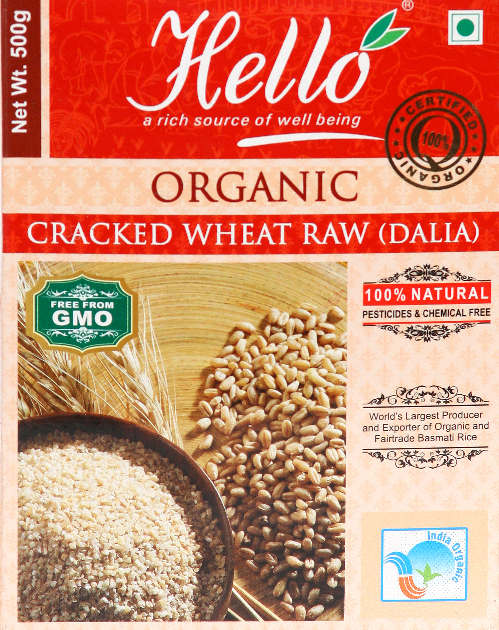 Cracked Wheat (Dalia) Organic wheat in its natural unrefined state, features a host of important nutrients. To benefit from the wholesomeness of wheat it is important to choose wheat products made from organic whole wheat dalia rather than those that are refined and stripped of their natural goodness. Whole wheat Dalia is an important nutritious breakfast cereal because of the fibers and proteins.