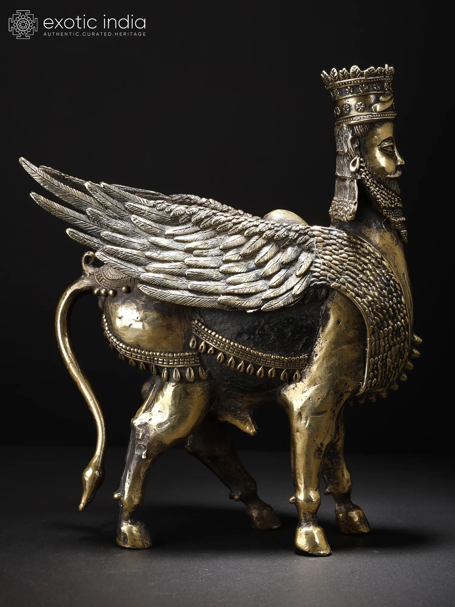 This Brass and Stone statue ingeniously blends elements of abstract art with traditional aesthetics, resulting in a visually captivating piece. Drawing inspiration from ancient Assyrian art, particularly the Lamassu, this sculpture exemplifies a harmonious fusion of abstract forms and traditional motifs. The use of brass and stone adds depth and texture to the statue, enhancing its allure and timeless appeal.
