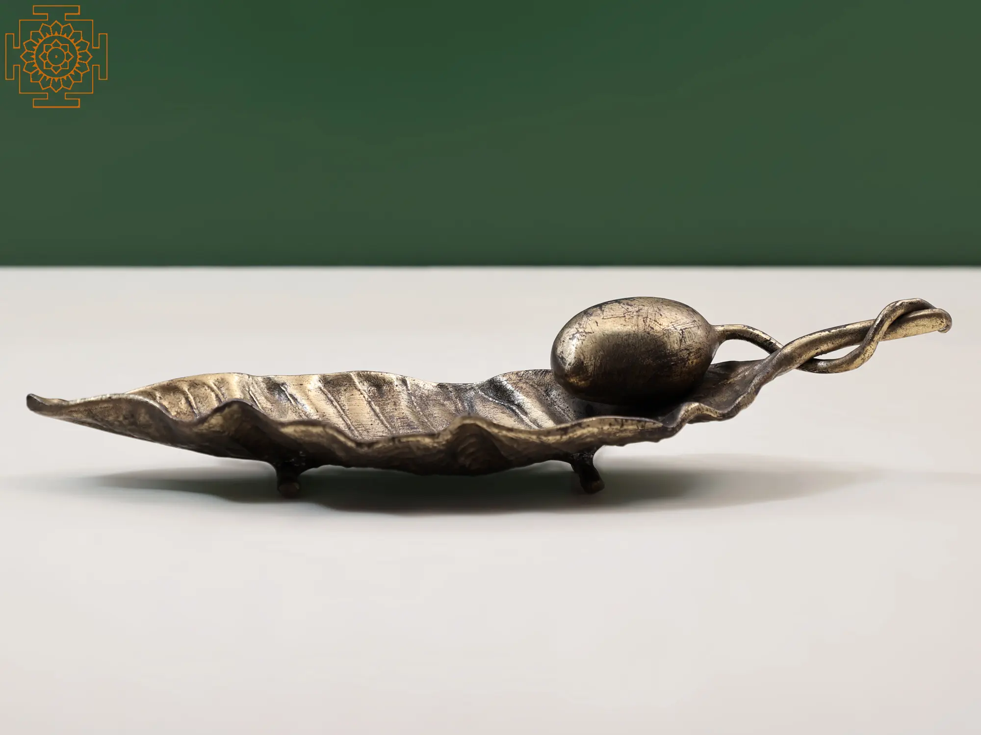 Whether gracing your dining table as a stunning centerpiece, adorning a sideboard in your living room, or adding a touch of artisanal flair to your kitchen counter, this brass mango and leaf piece is sure to draw admiration. Its elegant design makes it suitable for a variety of décors, from traditional to contemporary, adding a subtle yet impactful statement. It can be used to hold small trinkets, keys, or simply be admired for its sheer aesthetic appeal. The rich metallic sheen catches the light beautifully, creating a dynamic visual interest.