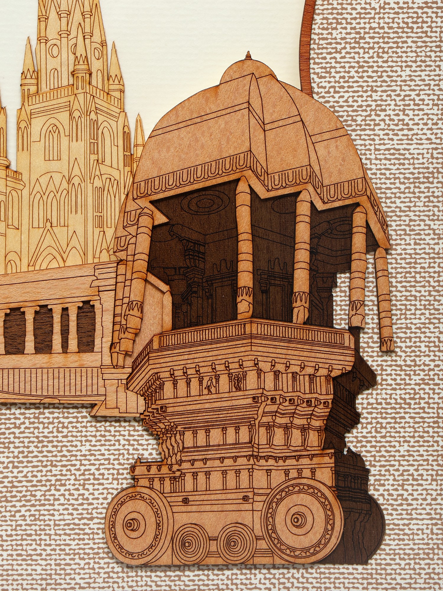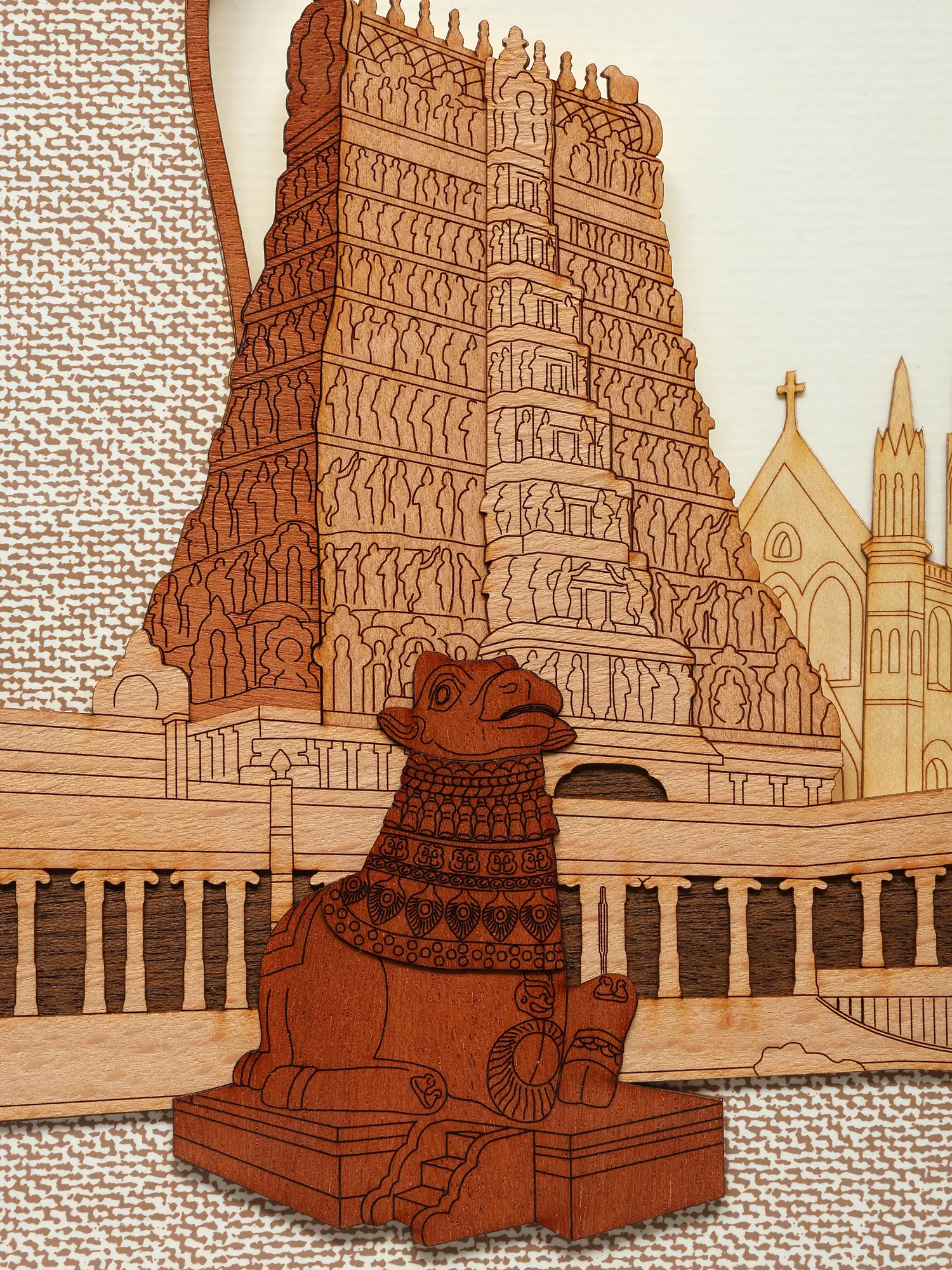 10" Chennai Monuments Wood Frame | Wall Hanging | Home Decor