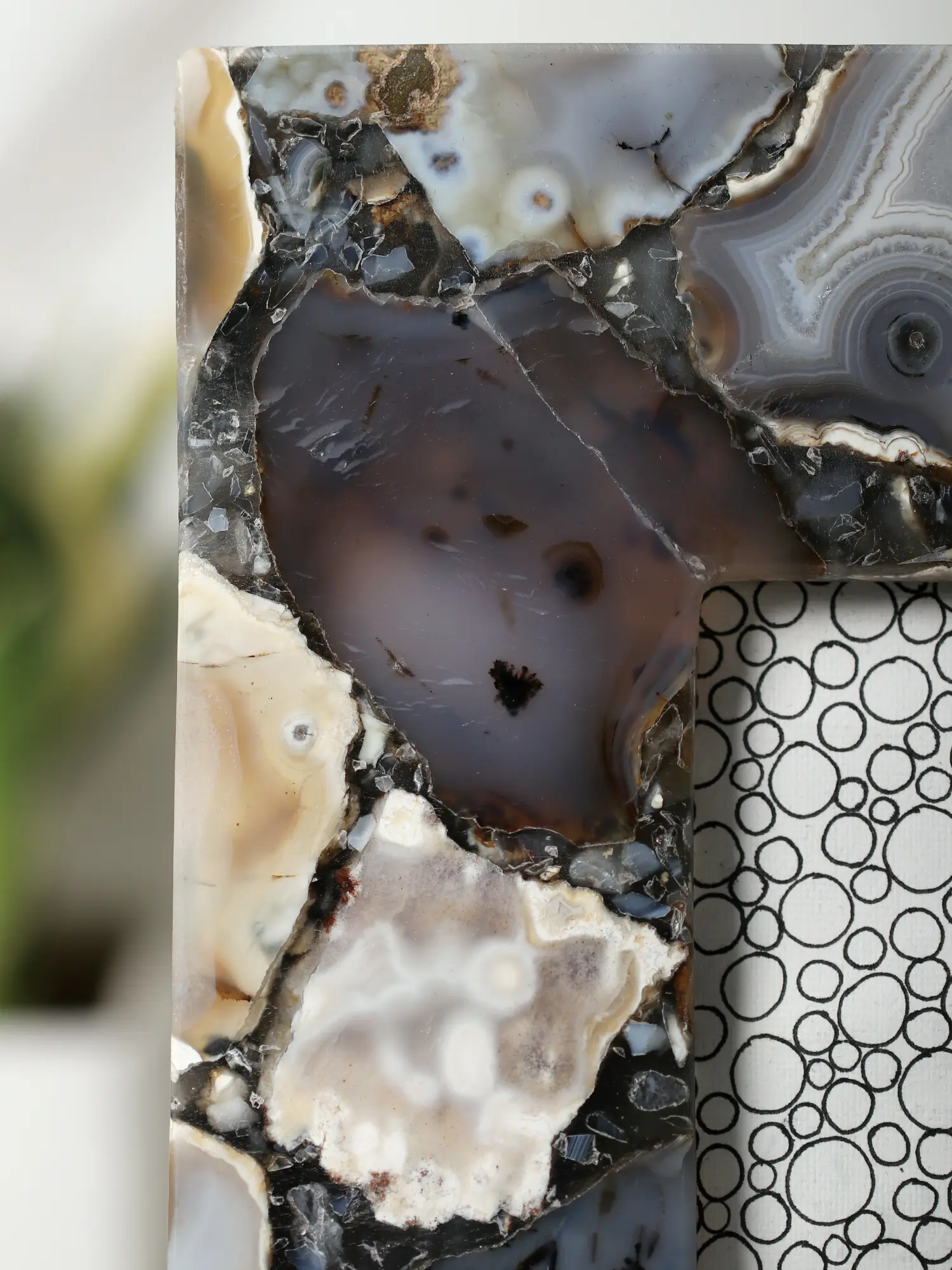 An excellent gemstone for achieving mental, physical, and spiritual balance. In the newest trend in home decor, gemstones are being used to construct table decor like small statues and photo frames. This Designer Photo Frame in Agate Gemstone is a beautiful creation that keeps the memories of the good times floating in the form of photos and also enriches the environment with Agate's positive energy. The Agate used in this frame is the Botswana Agate. Due to the stone's formation in layers of volcanic ash, it is renowned for its complex banding patterns. The smooth, polished surface enhances the gemstone's inherent beauty, making this photo frame a captivating addition to any decor. Imbue your space with the timeless allure of agate while showcasing your treasured photos luxuriously and distinctively.