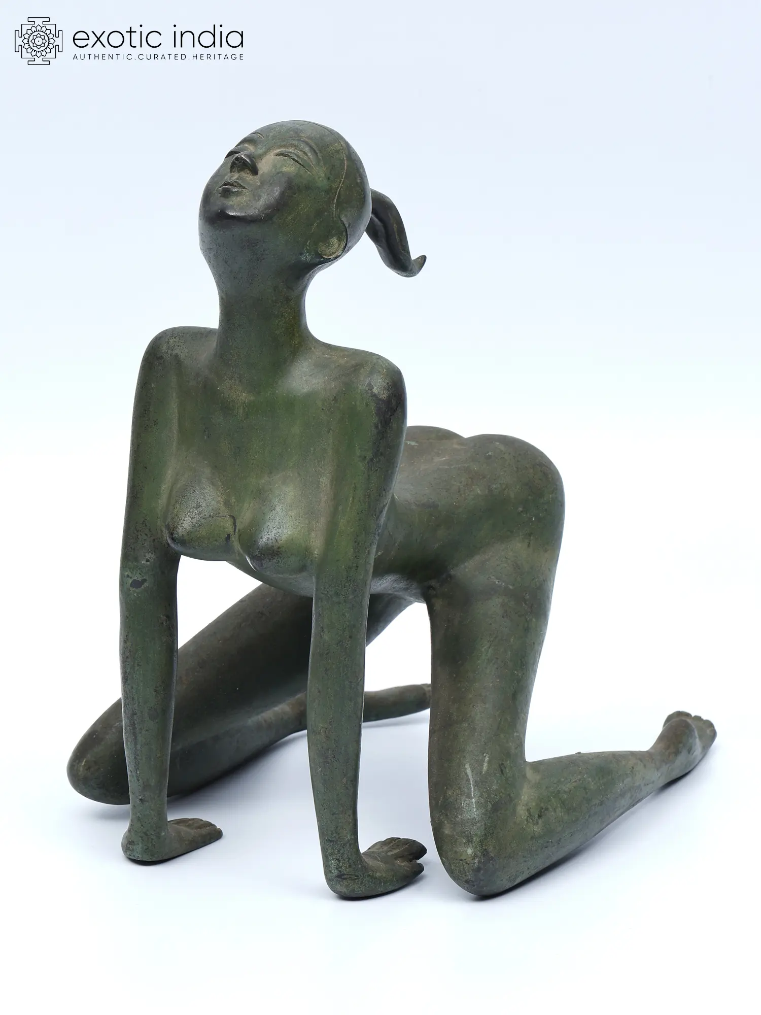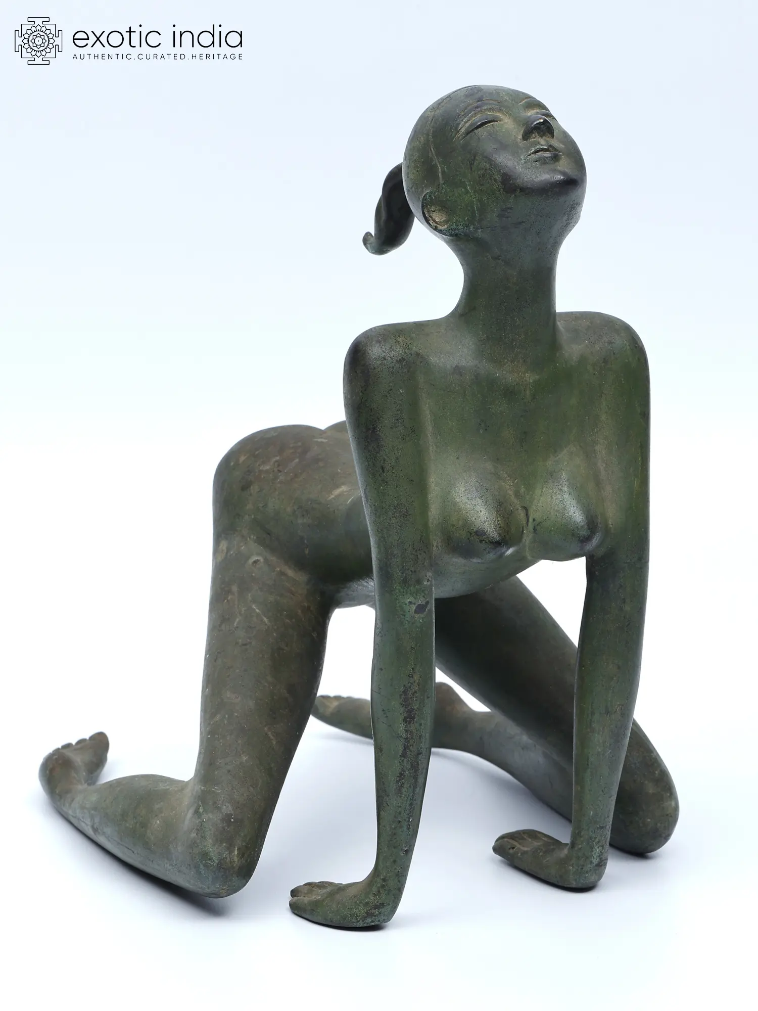 The ancient metal-bronze is filled with an eternal sense of vigor and life in this striking home decor statue of a lady doing Yoga.