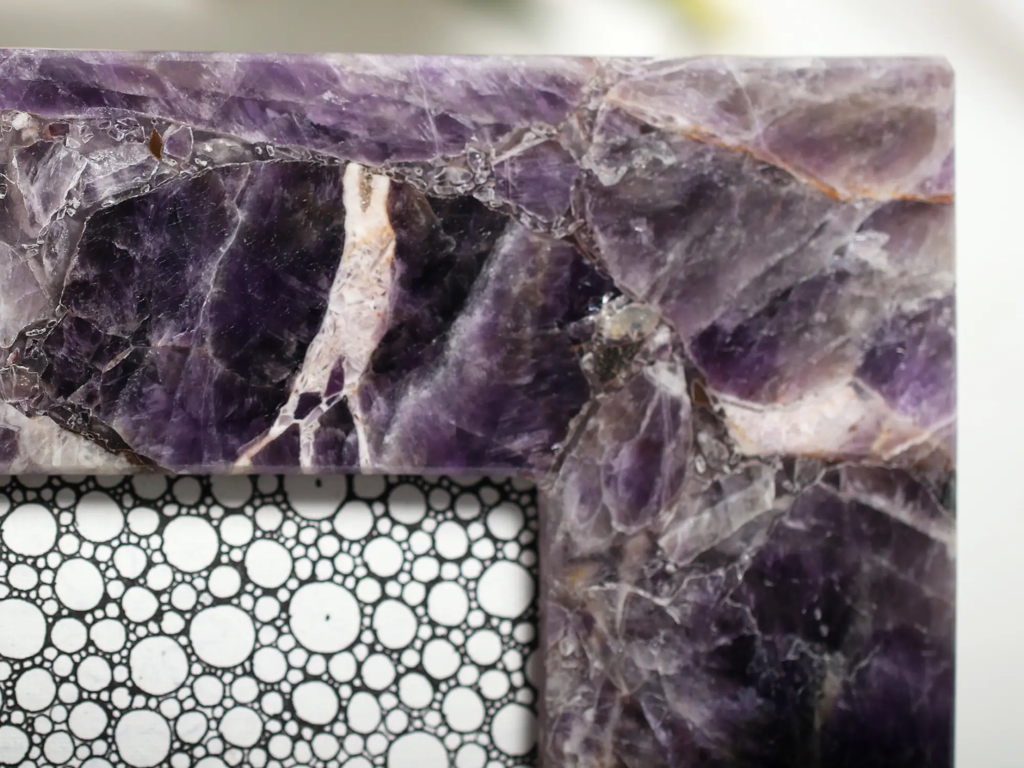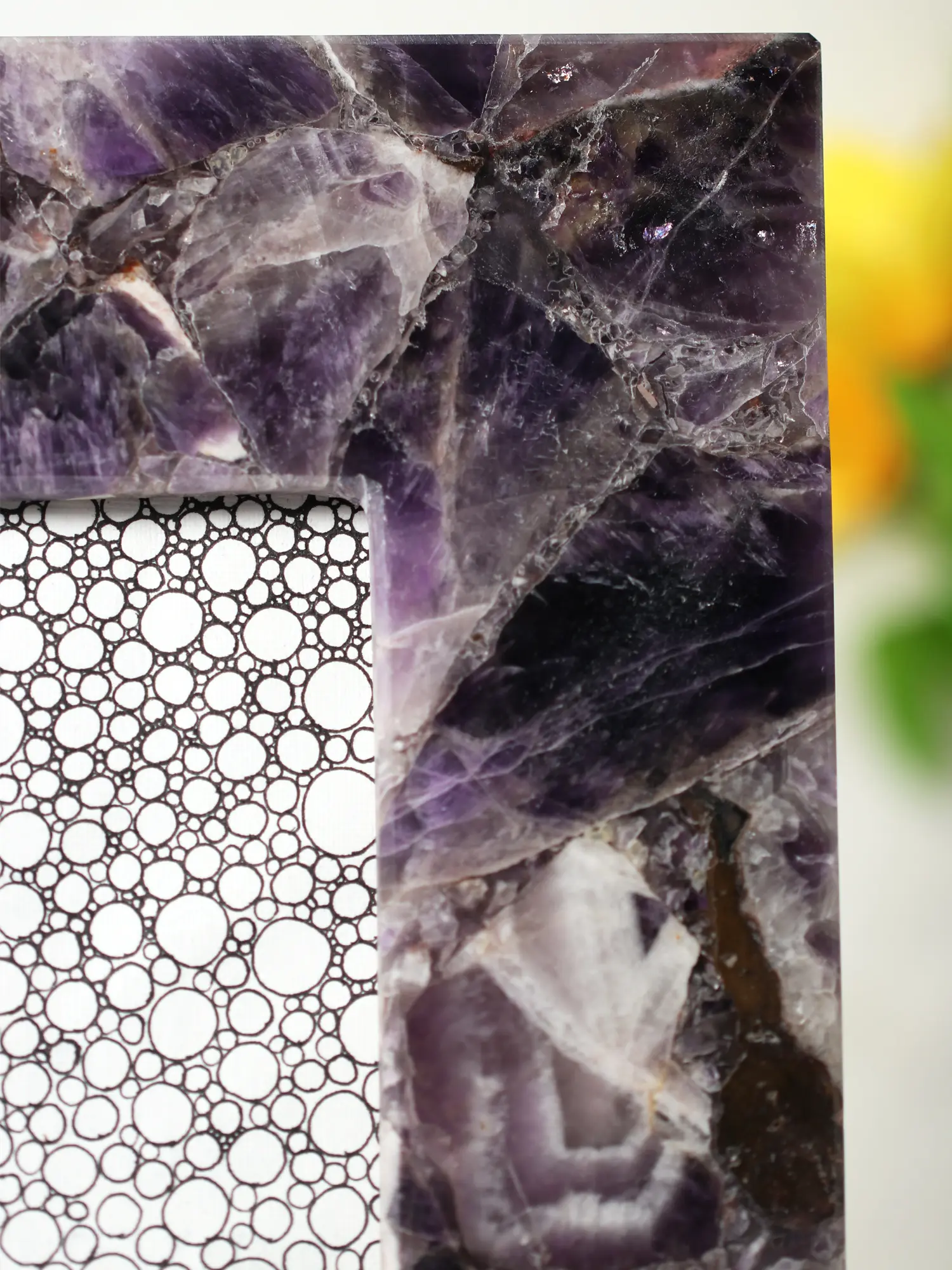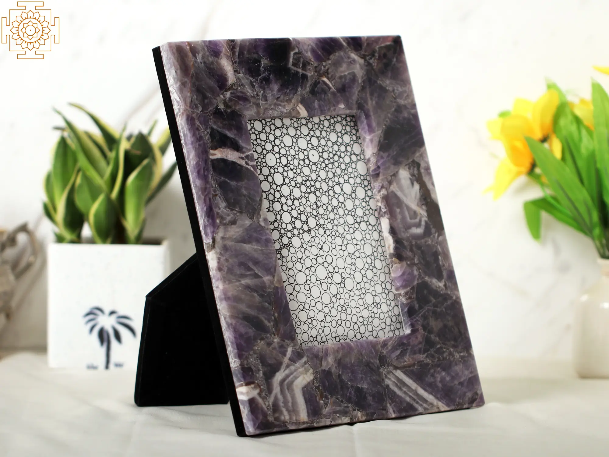 This Amethyst Quartz Photo Frame is a medium that can become the best medium to preserve your memories. Crafted from genuine amethyst quartz, this frame envelops the best memories of your life in the calming energy of purple hues. The crystal's natural variations create a one-of-a-kind aesthetic, turning each image into a serene display. Compact and enchanting, it's ideal for showcasing on desks or shelves, combining aesthetic beauty with sentimental value.