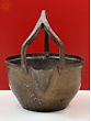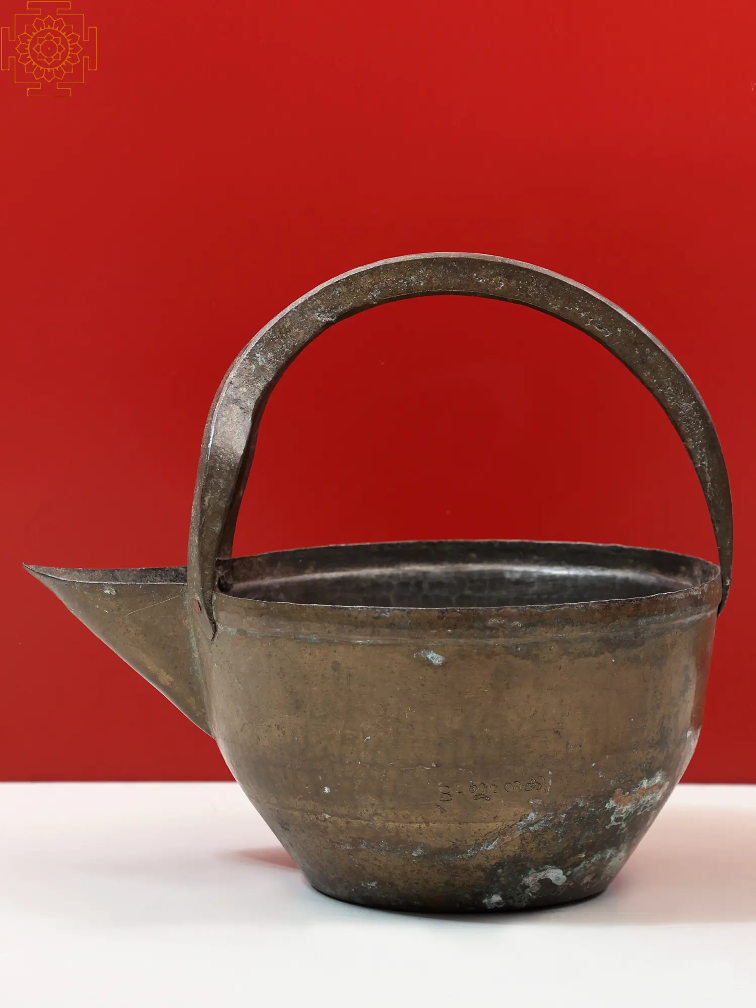 This Vintage Large Brass Serving Bowl is handmade and is known by many names. In some regions, it is called the Gokarnan and in some, it is known as the Rasavelli. Its function remains more or less the same in every region. It is used for serving liquid food during feasts and normal house meals. It was probably designed to disburse Rasam which is a spicy South Indian soup-like meal that is typically eaten with rice. The name Gokarnan is derived from the pattern, which mimics cow ears. The pointed mouth aids in the pouring of liquids without spilling. The handle is for holding the container. This item has been used for generations to serve people with a full supper.
