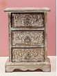 Enchanting and timeless, this “Vintage Wooden Side Table with Drawer” is a symbol of artistry and heritage. This creation has been adorned with floral motifs, in which each stroke whispers tales of skilled hands and meticulous dedication. This handmade masterpiece transcends mere furniture in fact it is a living testament to the elegance of bygone days. The rich, aged wood tells a story, carrying the weight of memories and traditions. Enrich your living space with this heirloom-quality creation, where functionality meets poetic design. Embrace the allure of nostalgia and add a touch of sophistication to your home with this cherished creation.