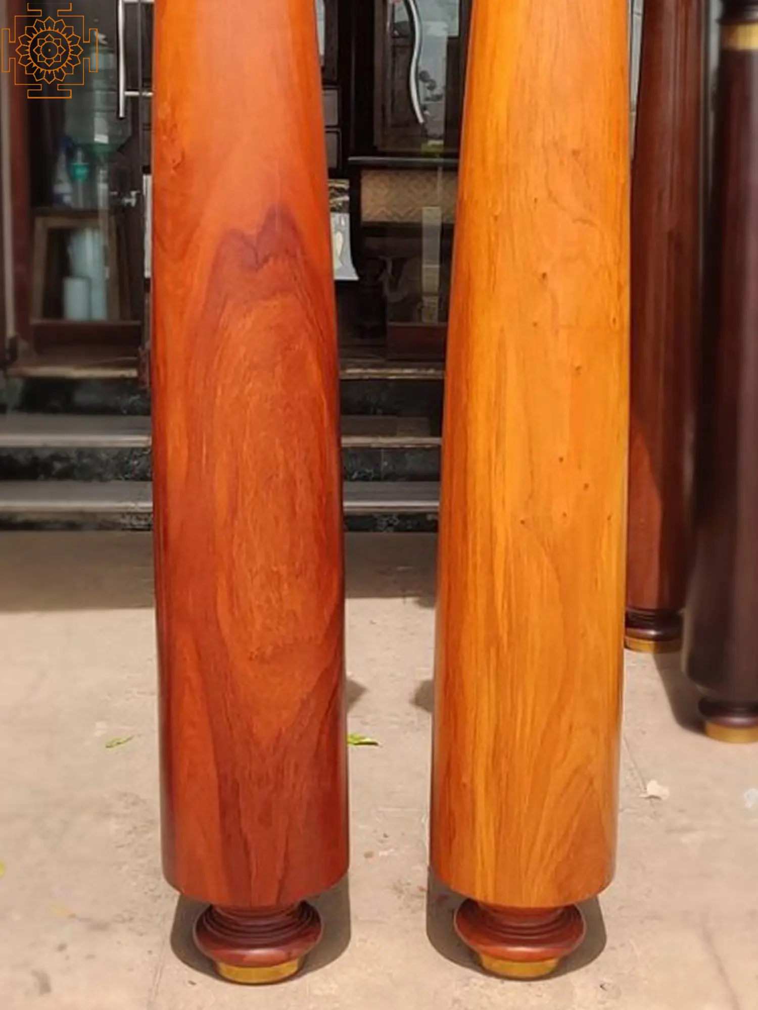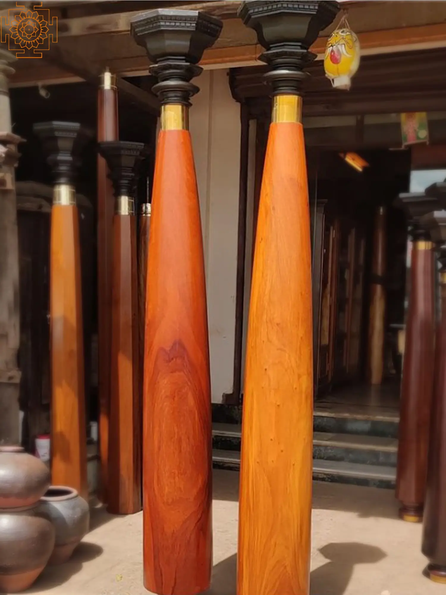 The Vengai Wood Pillar Pair is a remarkable embodiment of natural beauty and elegance. Carved from the finest Vengai wood, these pillars showcase the rich grains and textures inherent to this exquisite material. Each pillar stands tall and proud, exuding a sense of strength and stability. The intricate craftsmanship reveals meticulous detailing, with expertly carved patterns and motifs adorning the surface. These pillars can be adorned with intricate carvings inspired by traditional designs or left in their natural state, allowing the inherent beauty of the wood to shine through. Perfect for both interior and exterior spaces, these pillars add a touch of sophistication and charm. These pillars serve as enduring symbols of craftsmanship and bring a sense of warmth and character to any environment.