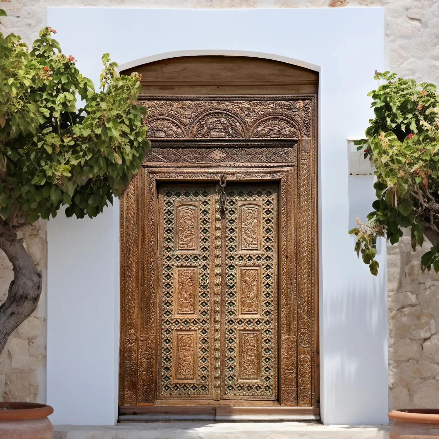 People visit palaces, and some people make their homes look like palaces by installing this Large Architectural Carved Wood Door, a Solid Wood Door, at the entry.