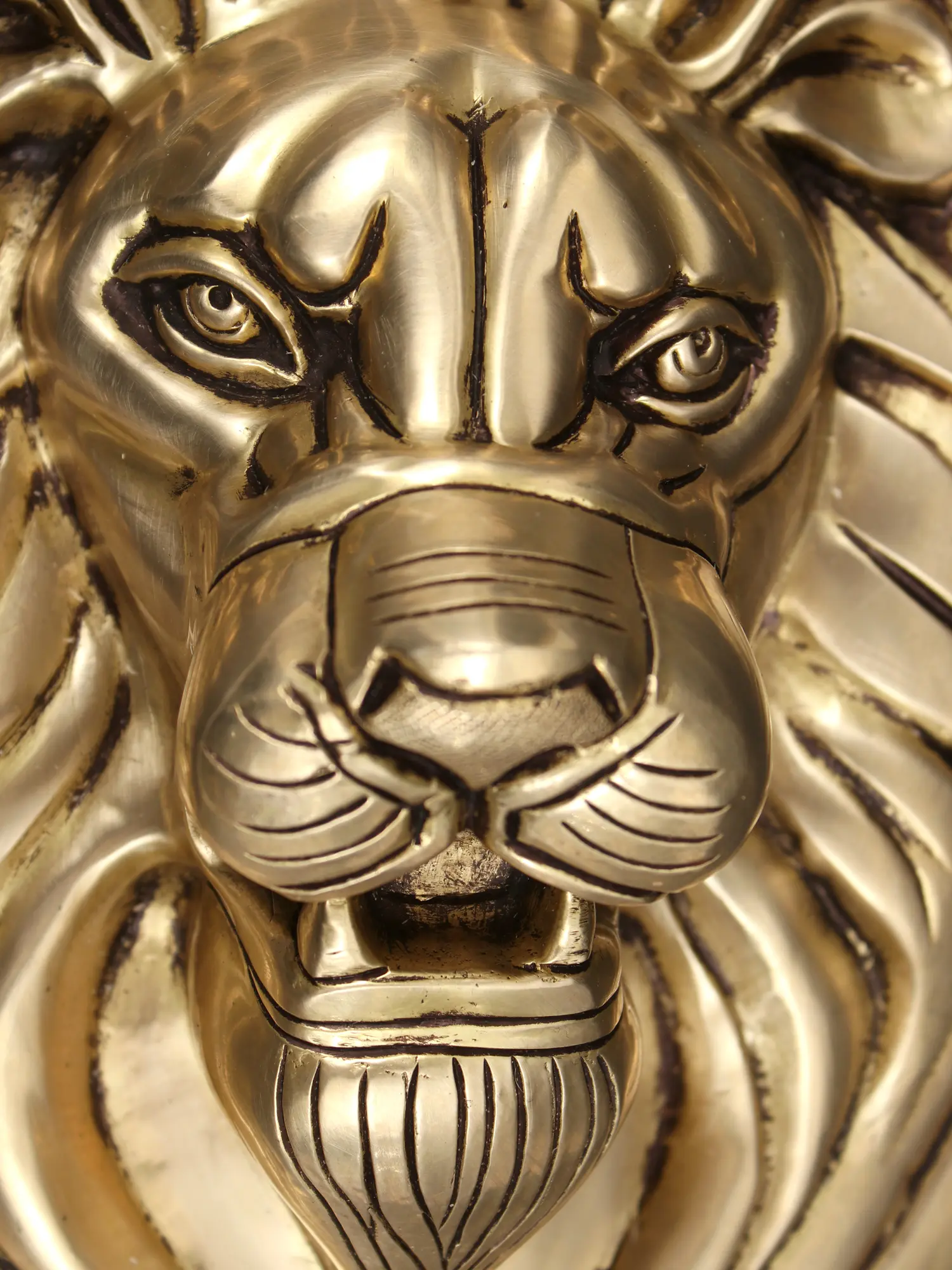 The craftsmanship and materiality of brass contribute to its durability and timeless aesthetic. Beyond its ornamental value, the lion head serves as a potent symbol, making this wall hanging not only a visually striking addition to any space but also an embodiment of strength and valor.