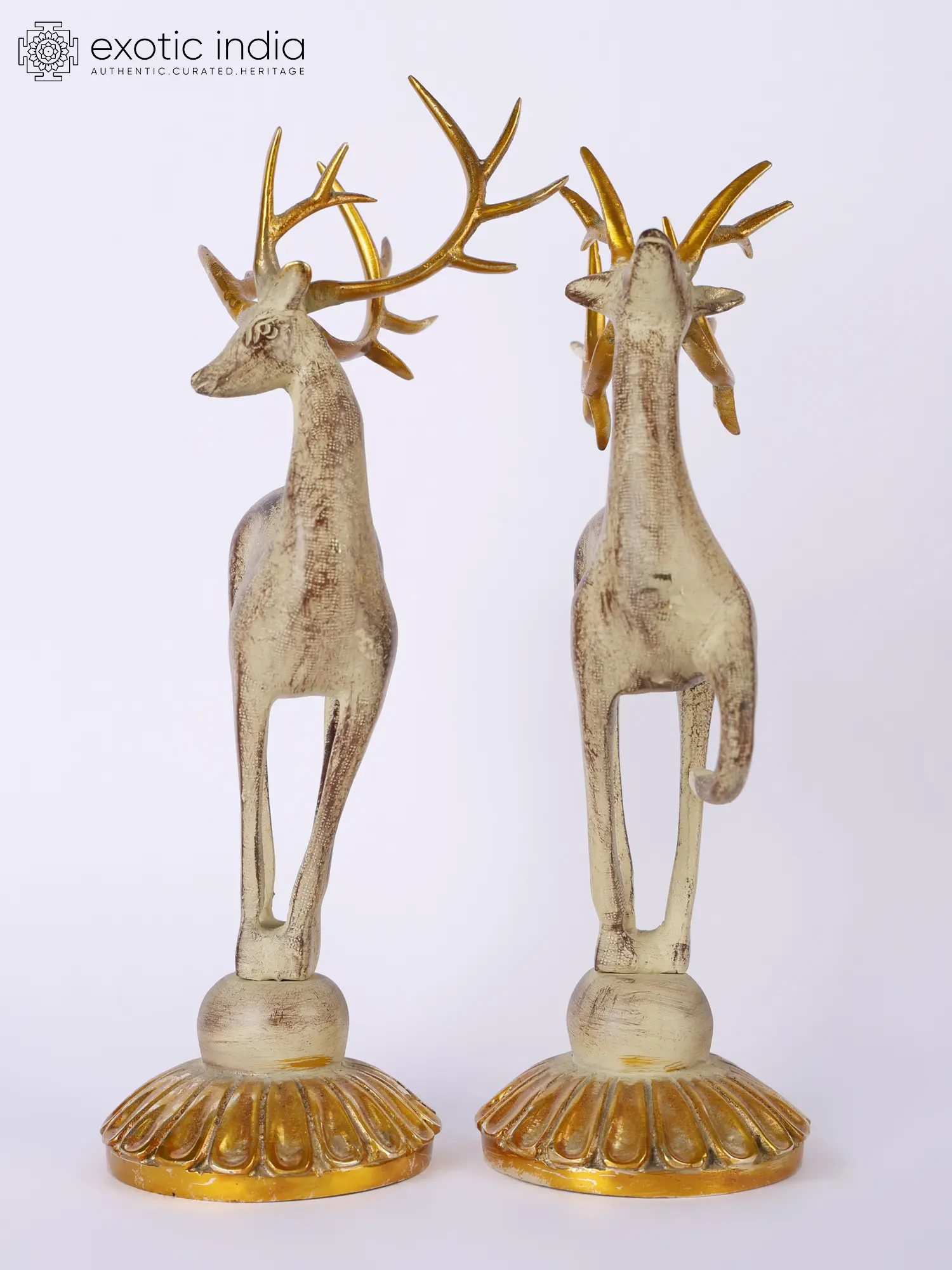 Deers, revered across cultures, echo in ancient texts and poetry, from the golden deer in the Ramayana to Nava-sahasanka-charita by Padmagupta. This Sanskrit epic, composed in the 10th-11th century, narrates tales of how a deer was the reason the protagonists came in contact with each other. Reflecting this poetic legacy, the Brass Pair of Reindeer a Home Decor transcends as a regal piece.