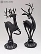 One reindeer, frozen mid-motion, delicately lifts a foot, as if dancing or leaping, while the other gazes with tranquil poise. This artistic representation not only captures the grace and beauty of deer but also infuses a poetic aura into home decor, creating a majestic ambiance with its expressive and elegant portrayal.