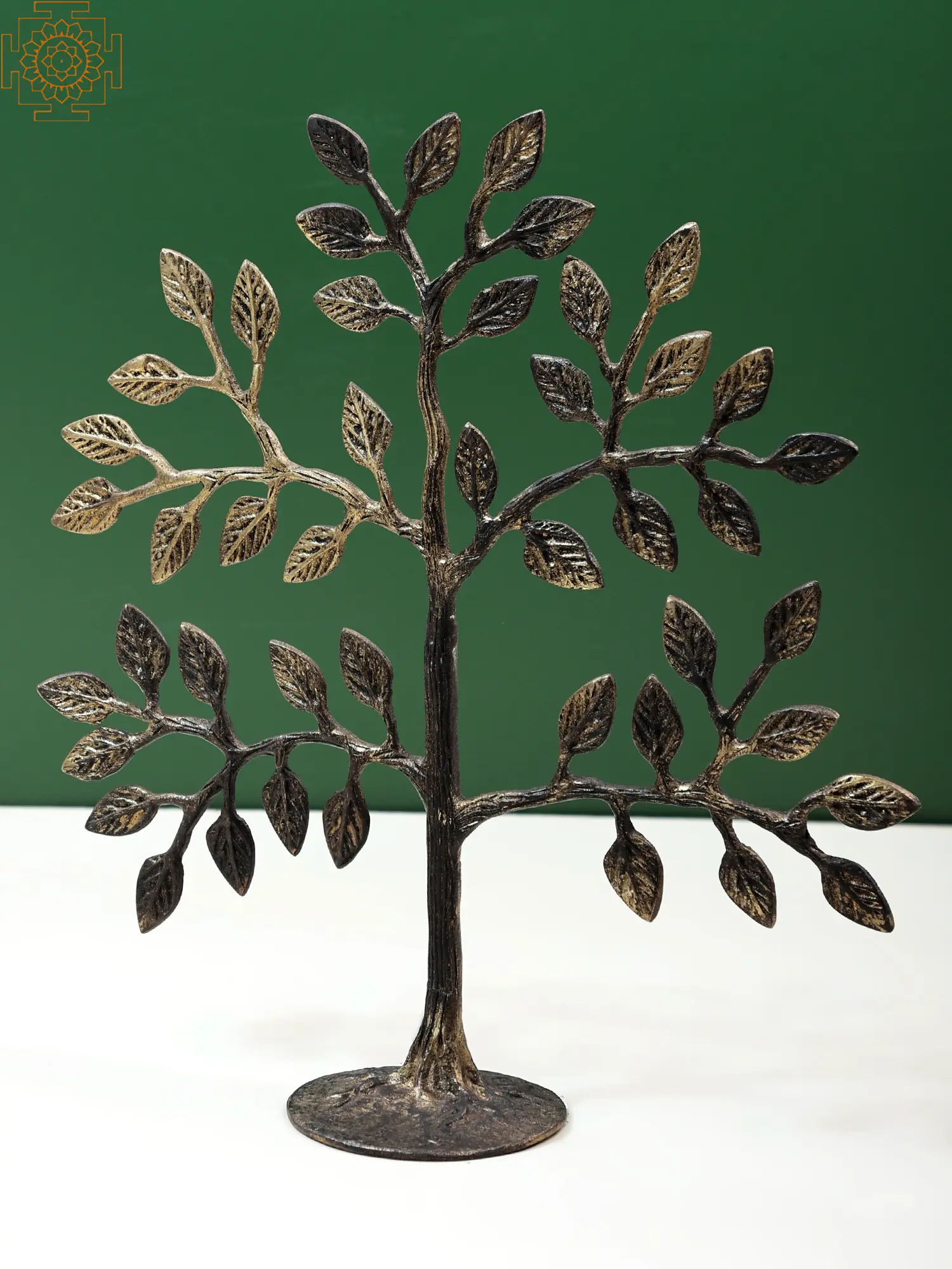 This small brass tree suggesting a Plumeria tree or Gour Champa tree, is a simple yet elegant definition of the beautiful being of a silent tree. The Plumeria or Gour Champa is an auspicious flower generally set up in graveyards for its nature of giving peace. The Plumeria is also used for making substance that cures migraine. This home decor piece of the Gour Champa is an auspicious and beautiful addition to a space that will bring peace, harmony, and spiritual growth. Keeping a small Diya or placing a statue alongside it'll not only enhance its beauty but also induce some veritably pious powers.