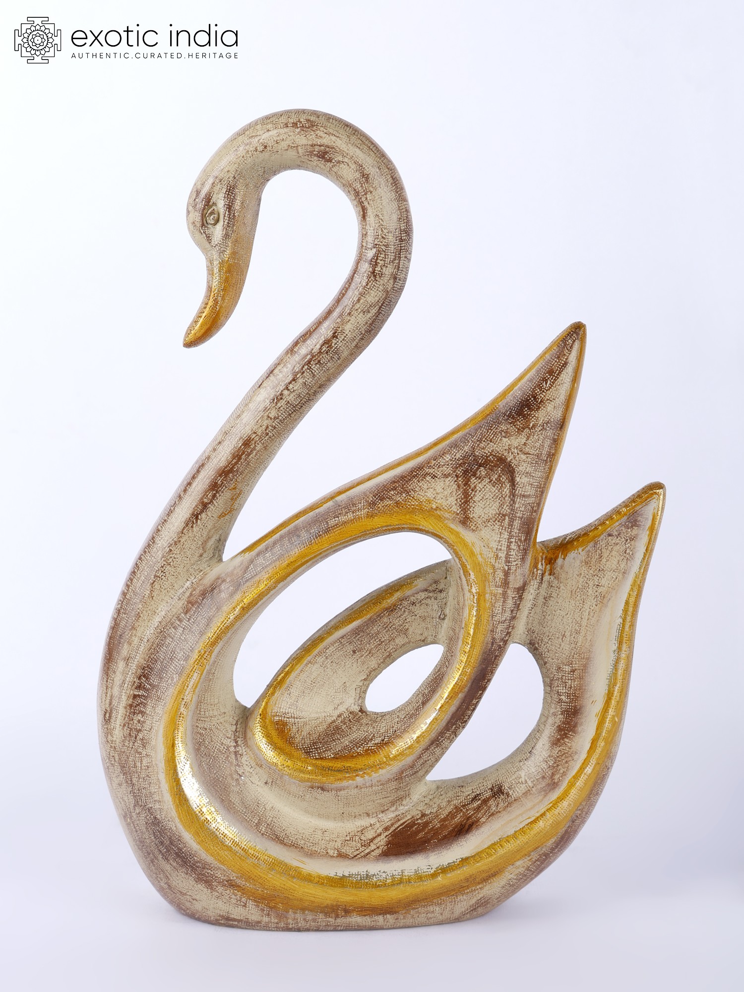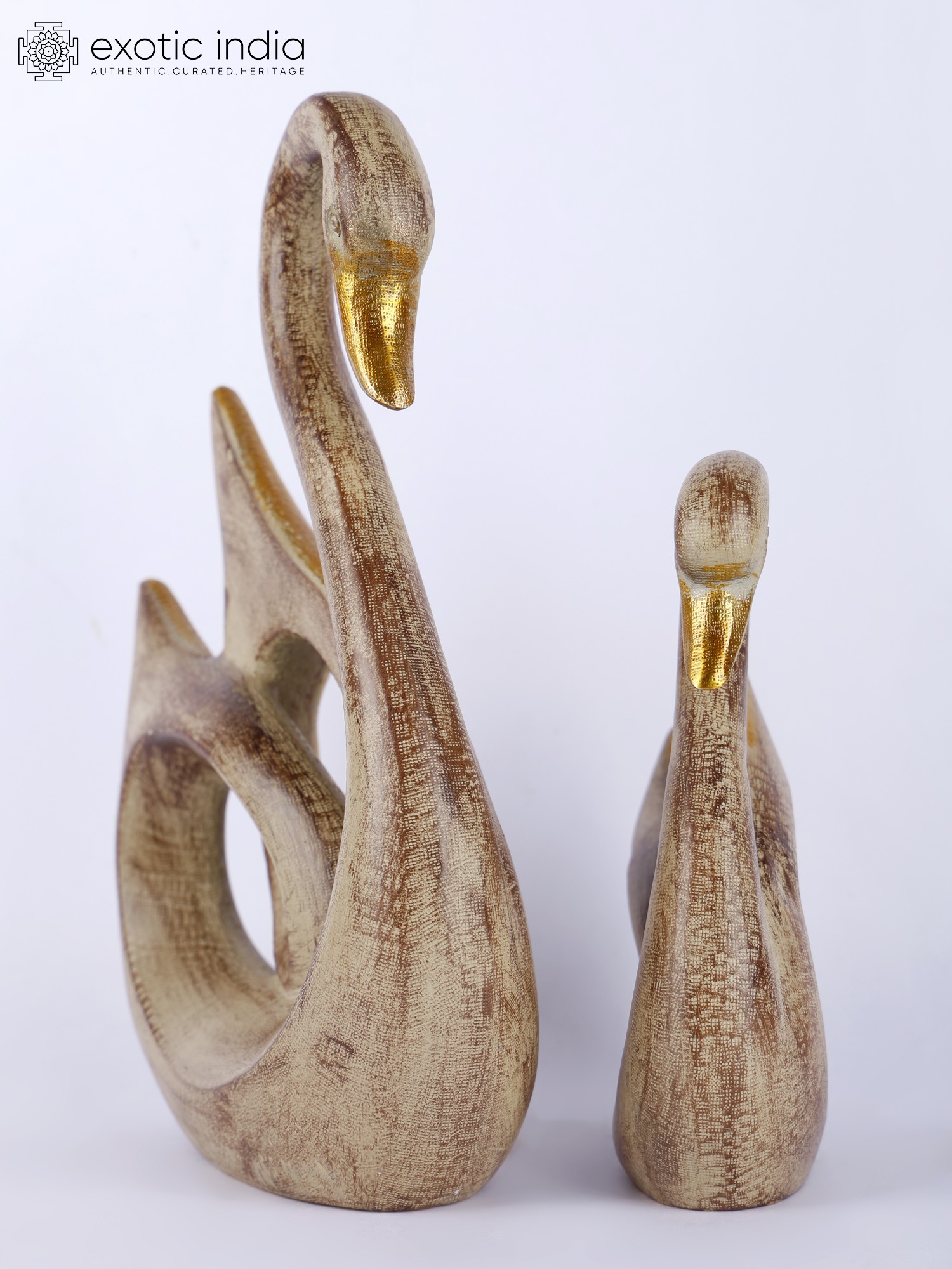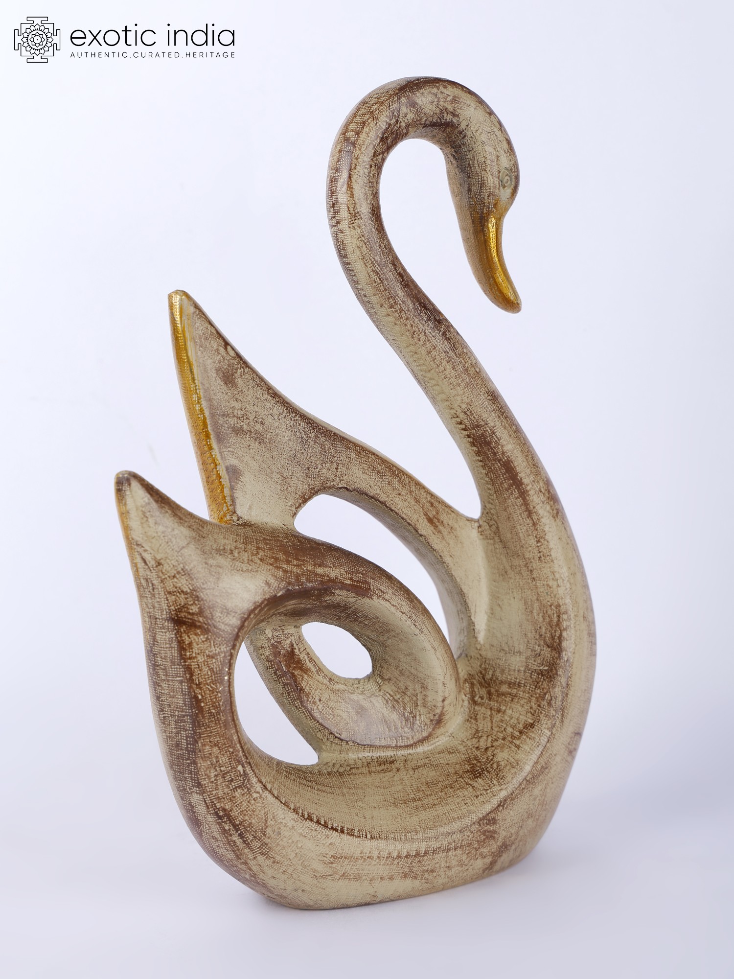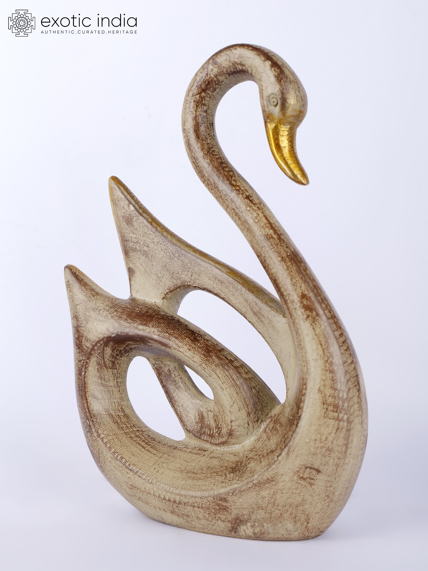This Brass Table Decor Cygnet with Mother Swan (Hansa), a captivating set of two, brings an ethereal touch to beautiful homes with its symbolism and aesthetic charm. Here the wings of the Cygnet and the Swan are very beautifully crafted with a twisted shape. In Hindu mythology, the swan, or "Hansa," represents purity, wisdom, and discernment. Its selective consumption of pearls symbolizes the pursuit of the finest in life, embodying elegance and discerning taste. Associated with Goddess Saraswati, the swan becomes a carrier of knowledge and wisdom.