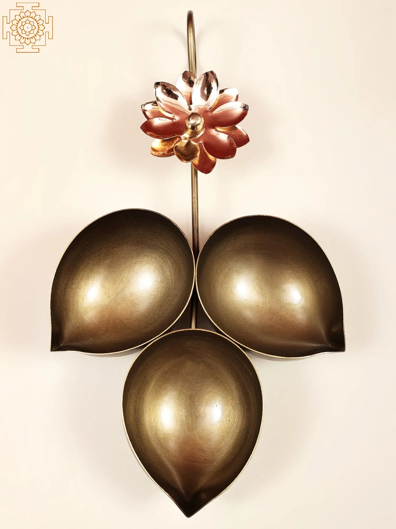 Witness the enchantment of these Diyas, a symphony of artistry and divinity. Crafted from Brass with Copper, this masterpiece not only illuminates spaces but also captures hearts with its mesmerising design. The handle, adorned with a delicately carved lotus flower, adds an ethereal touch, symbolising purity, prosperity and enlightenment.