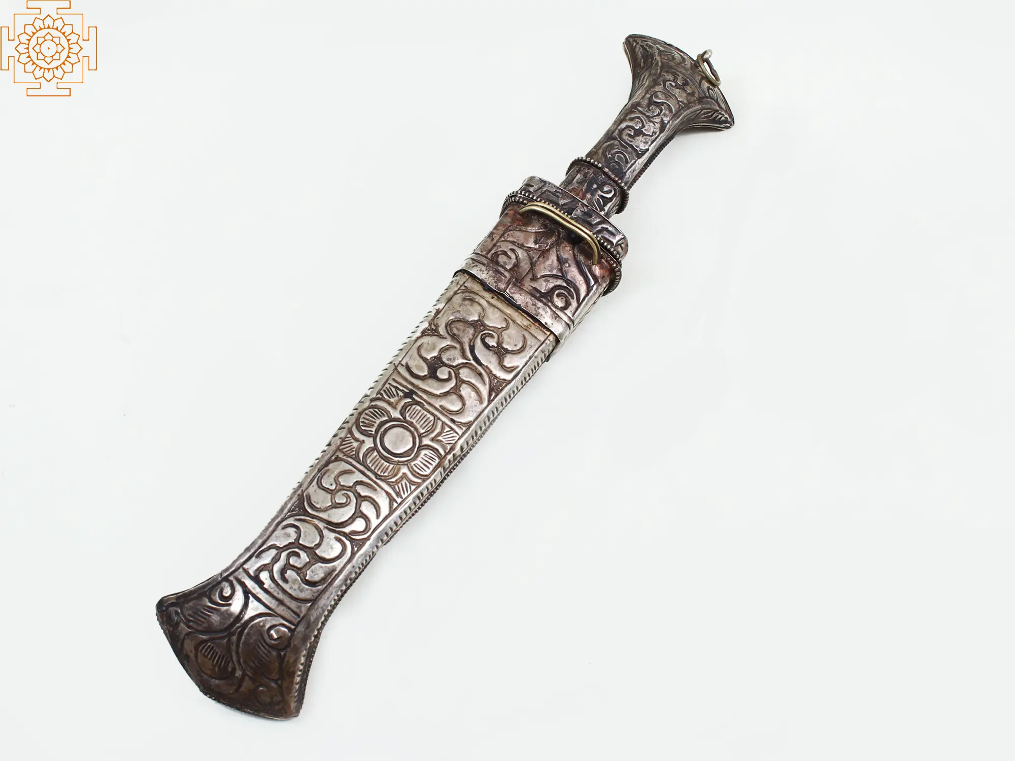 13" Tibetan Knife With Beautiful Cover In White Metal Hand Carved | Buddhist Ritual Item