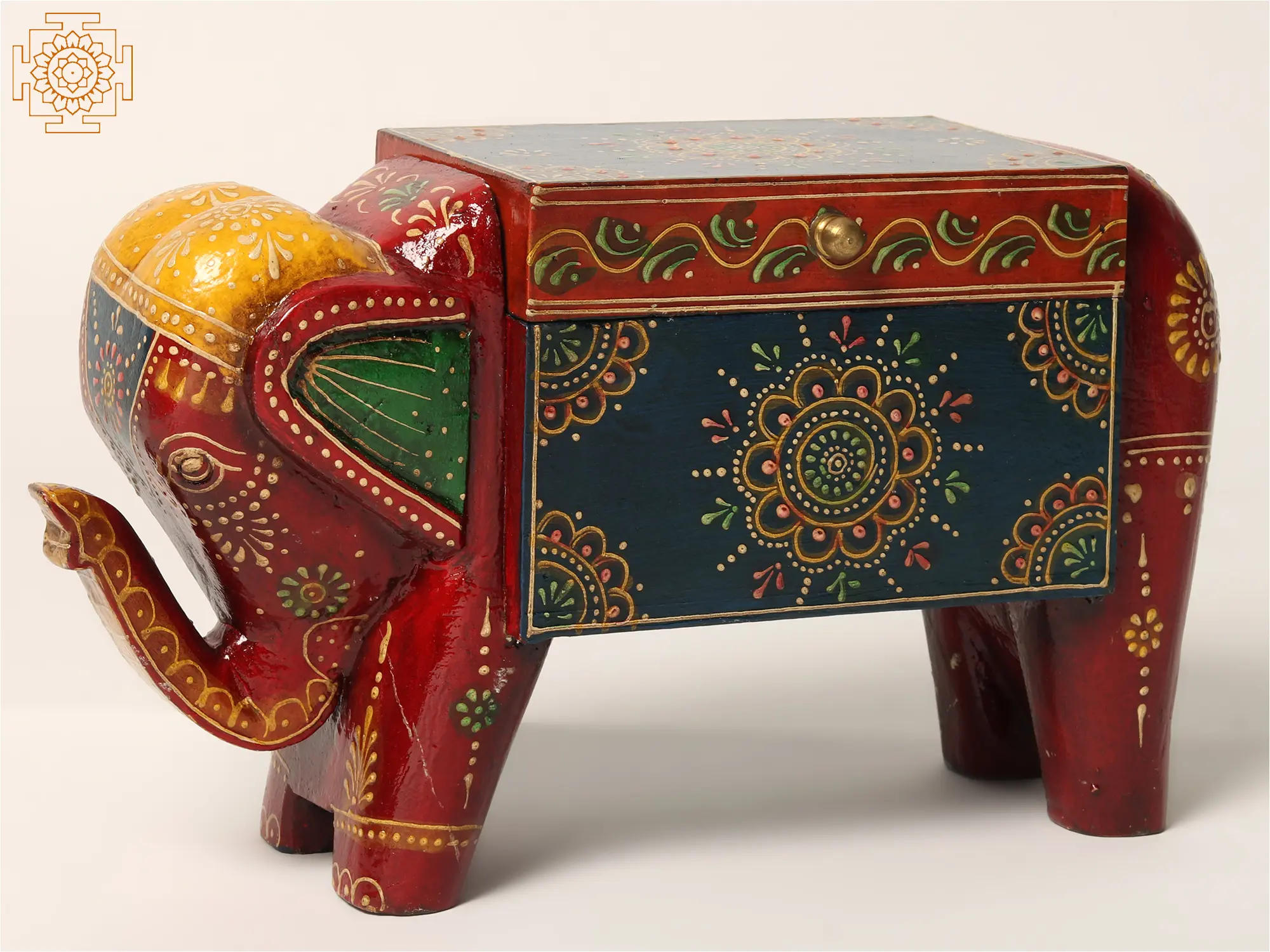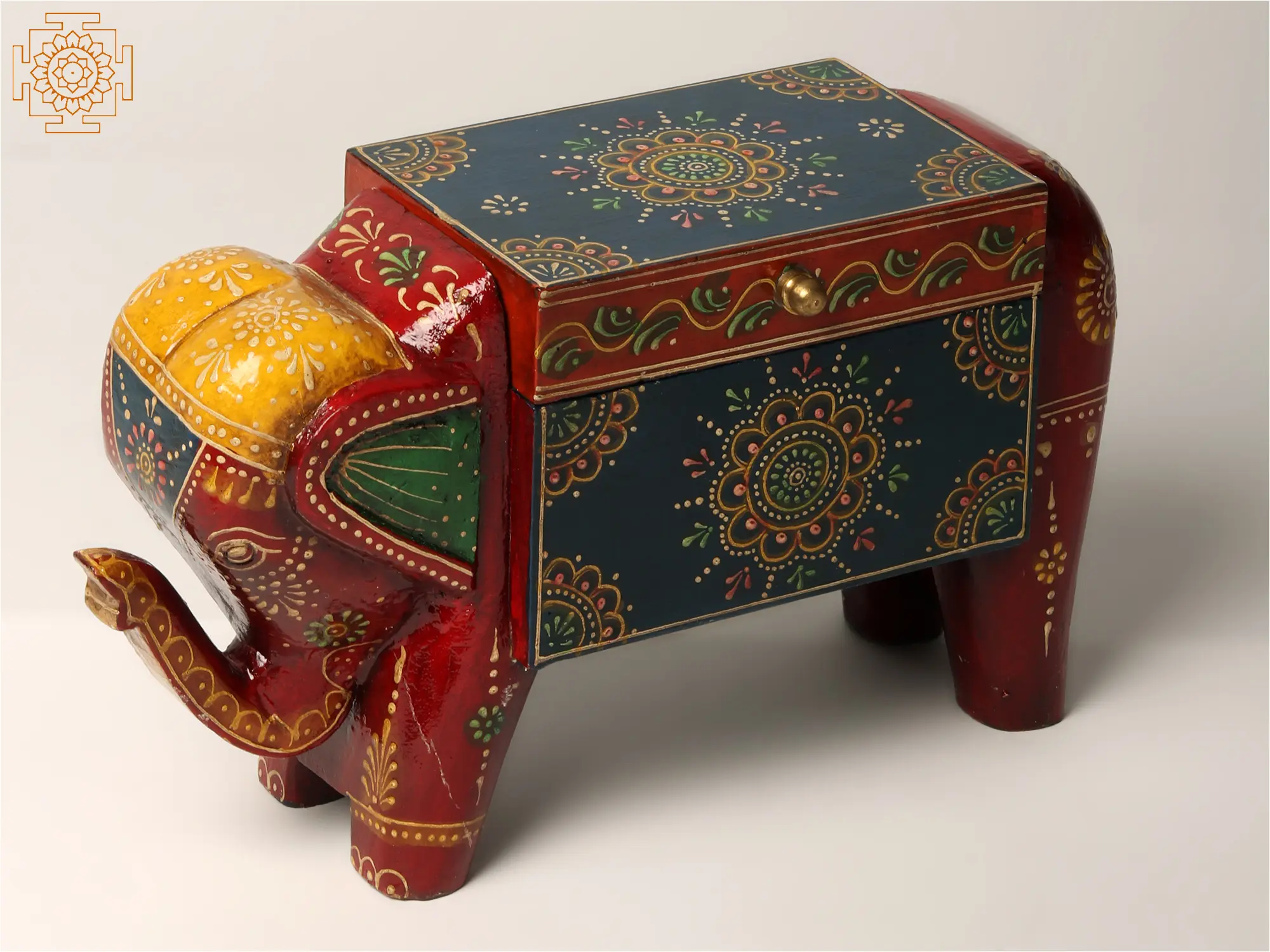 Let's acknowledge the elephant in the room. This is crafted with fine mango wood and carries the traditional Jodhpur decorative style. The wooden toy cum utility object carries the shape of an elephant. The elephant's stomach is the storage space. It also comes with a small lid. The elephant is painted with bright colors. The piece is a beautiful tribute to all the childhood memories that involved wooden toys with animal shapes. This utility object can bring back memories of the most pleasant time and can also be useful in storing small objects.