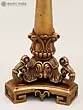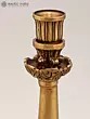 The design of this candle holder draws inspiration from classic motifs, reinterpreted with a contemporary sensibility. The sturdy, tiered base provides a stable foundation, adorned with subtle geometric patterns that hint at ancient architectural styles. Rising from this solid ground is a gracefully sculpted stem, gradually tapering upwards. It is punctuated by elaborate decorative elements that resemble unfurling acanthus leaves or flowing drapery, adding a sense of movement and depth. The uppermost section features a deeply ribbed cup, designed to securely hold a standard candle, its vertical lines mirroring the fluting on the base, creating a harmonious visual flow throughout the piece. The overall effect is one of enduring beauty and artistic mastery, making it a captivating focal point in any room.