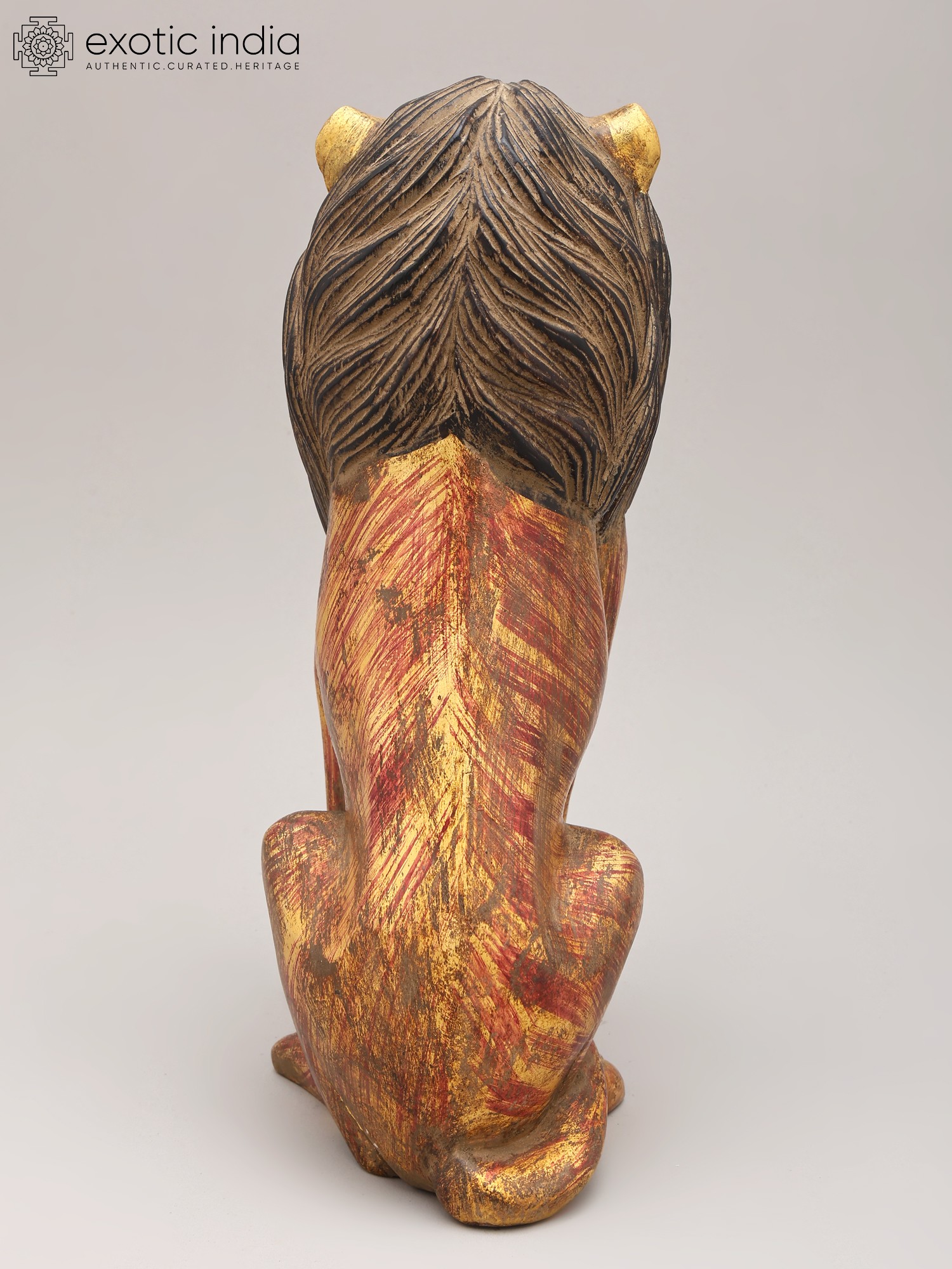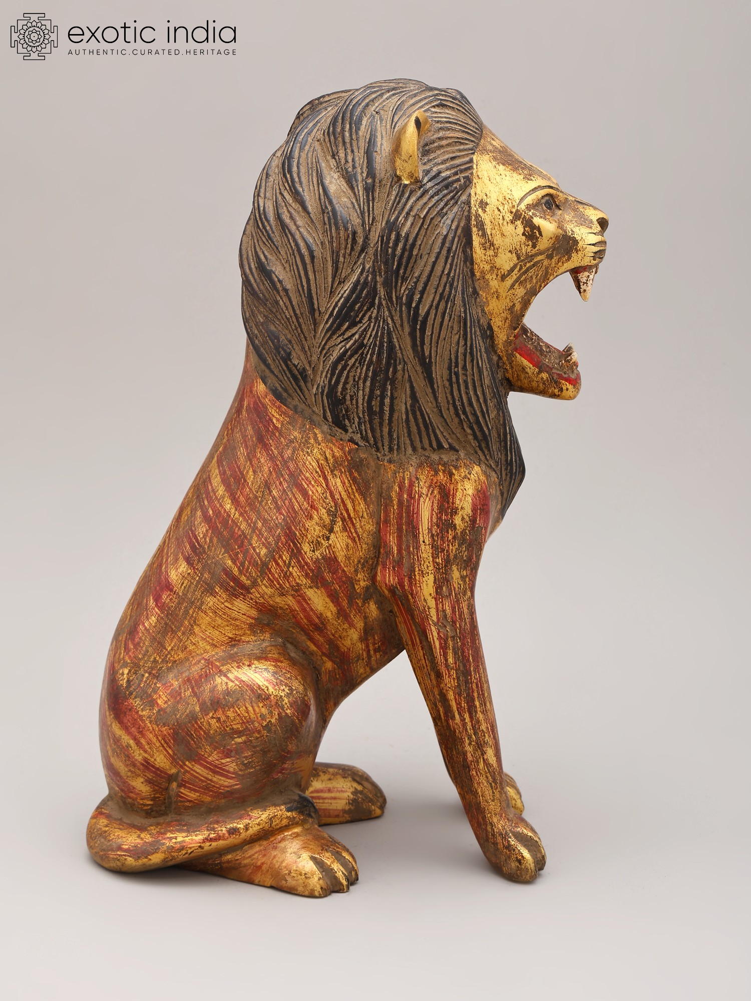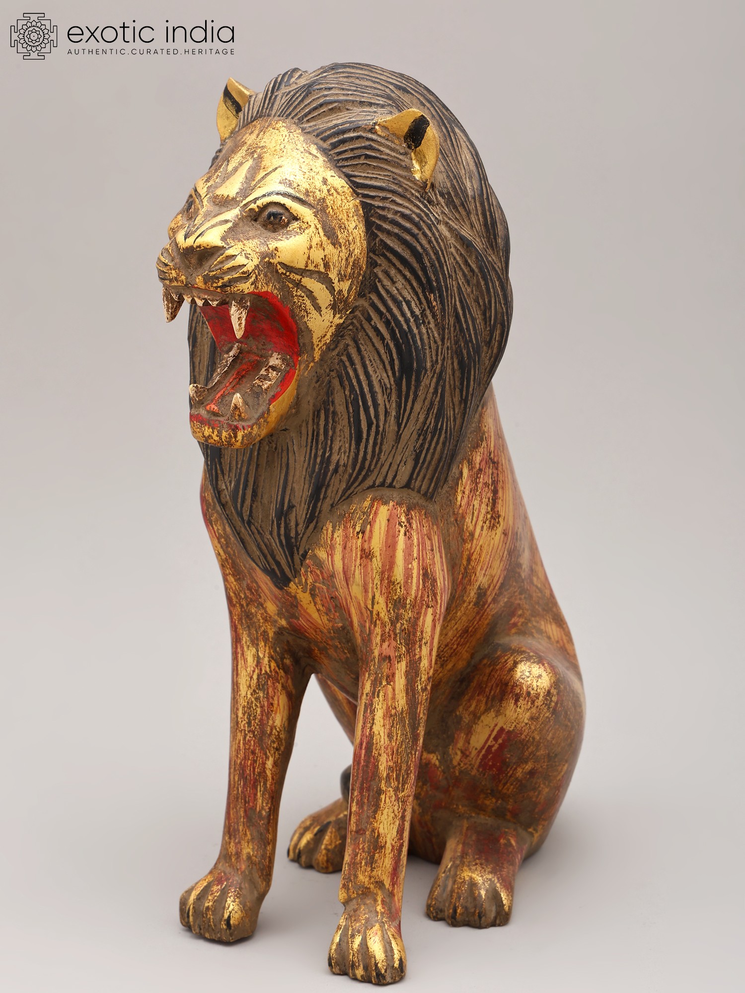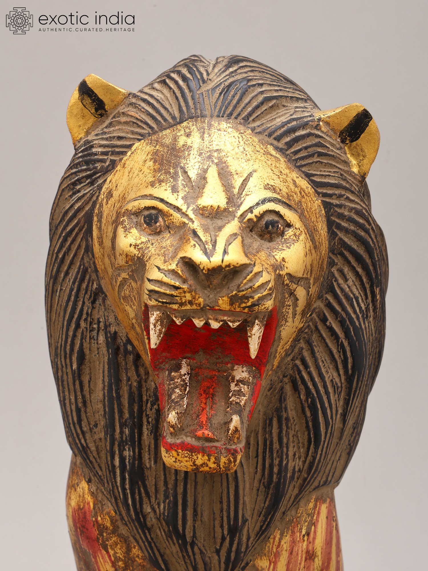 11" Roaring Lion Statue | Wood Carving | Home Decor