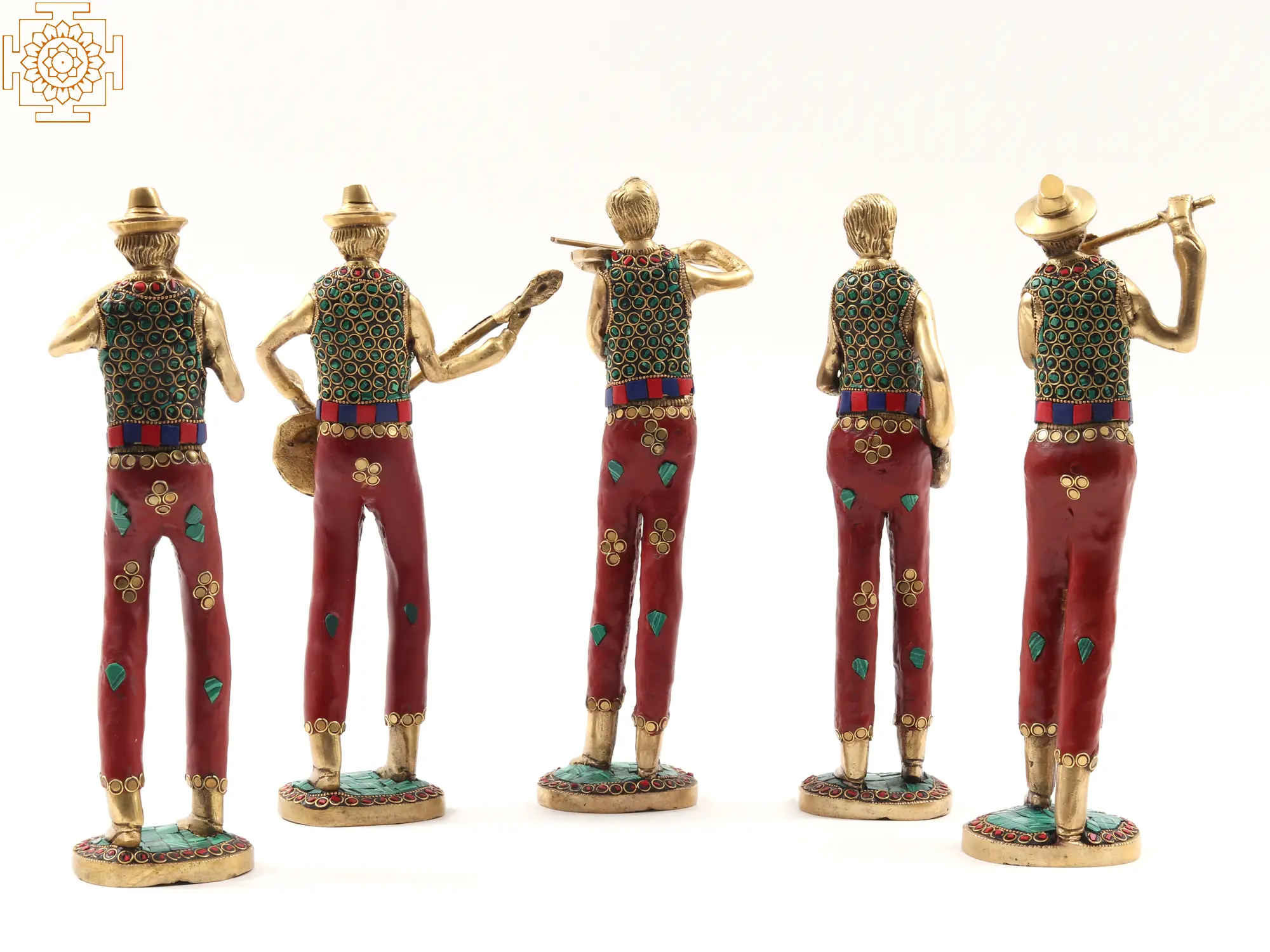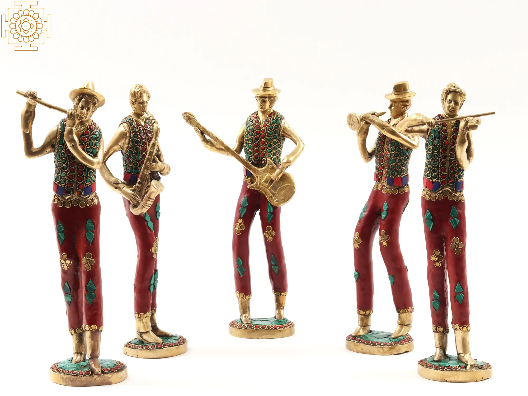 Country music, with its storytelling and emotional resonance, has inspired various forms of art, transcending geographical boundaries. This Set of Five Musicians, crafted in Brass with Inlay Work, is a captivating manifestation of this influence with a Southeast Asian twist. Each musician, adorned with intricate inlay work using colorful stones, plays a different instrument—flute, saxophone, trumpet, violin, and guitar.