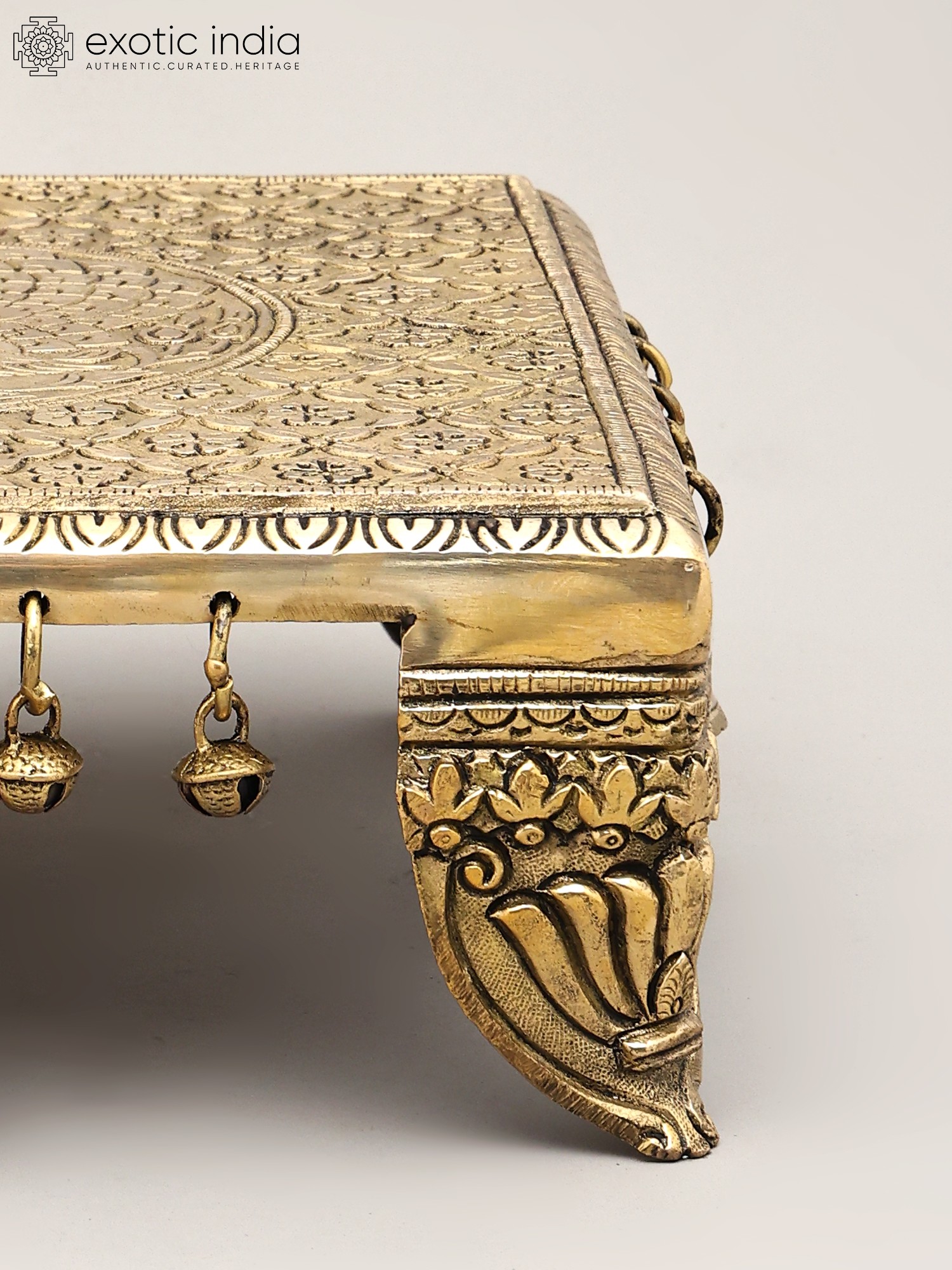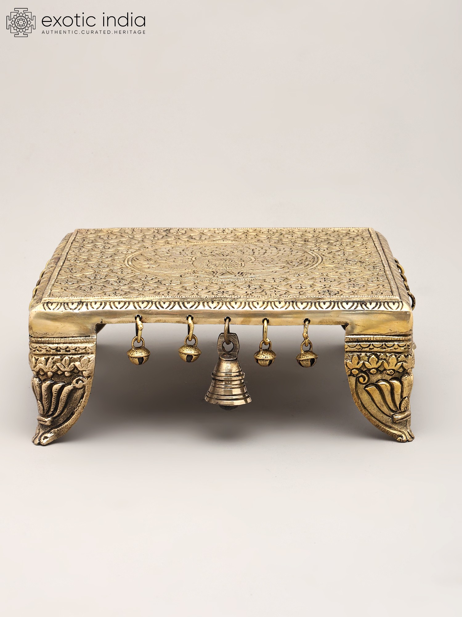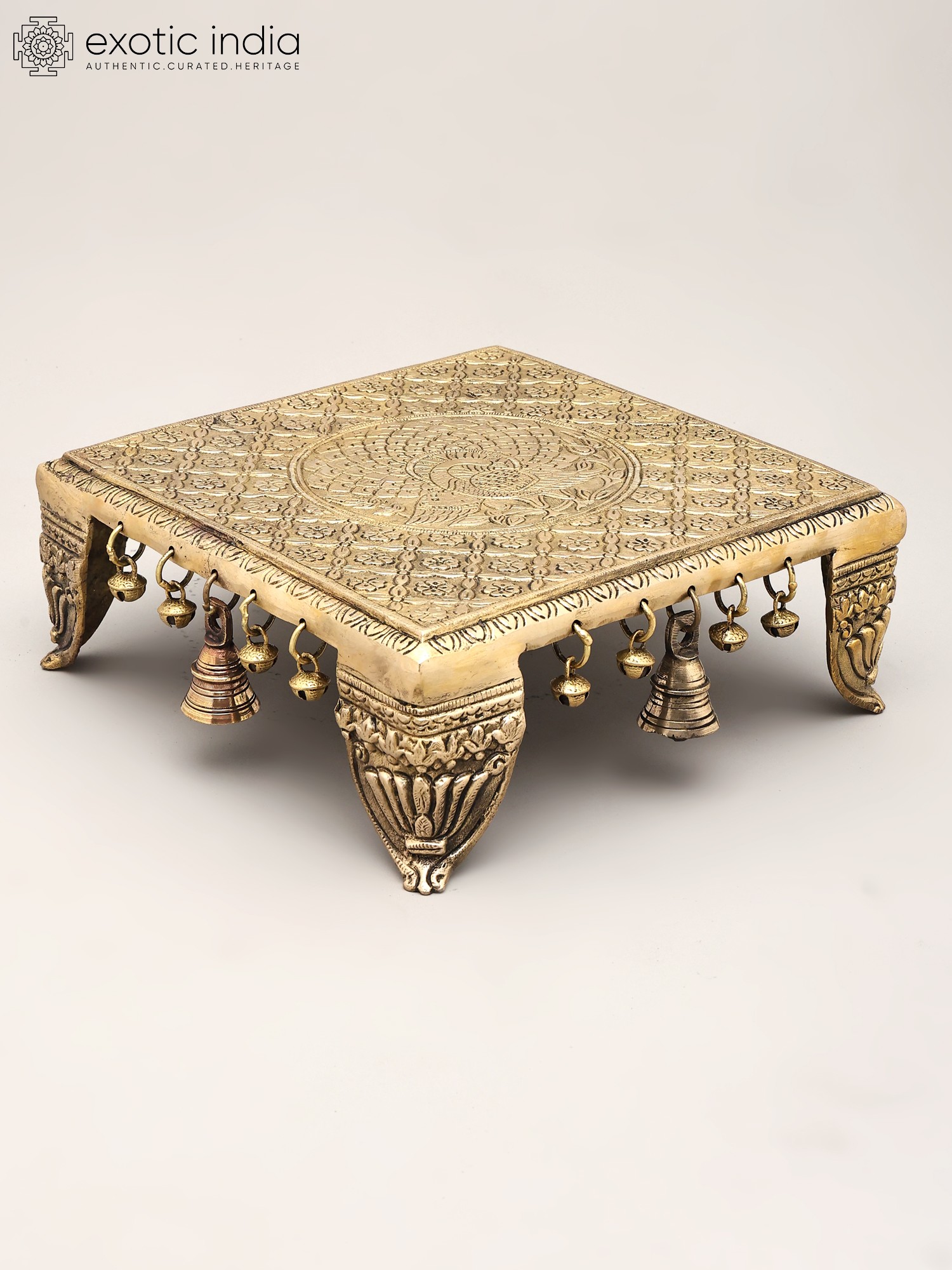 Floral Brass Pedestal (Chowki) with Bells