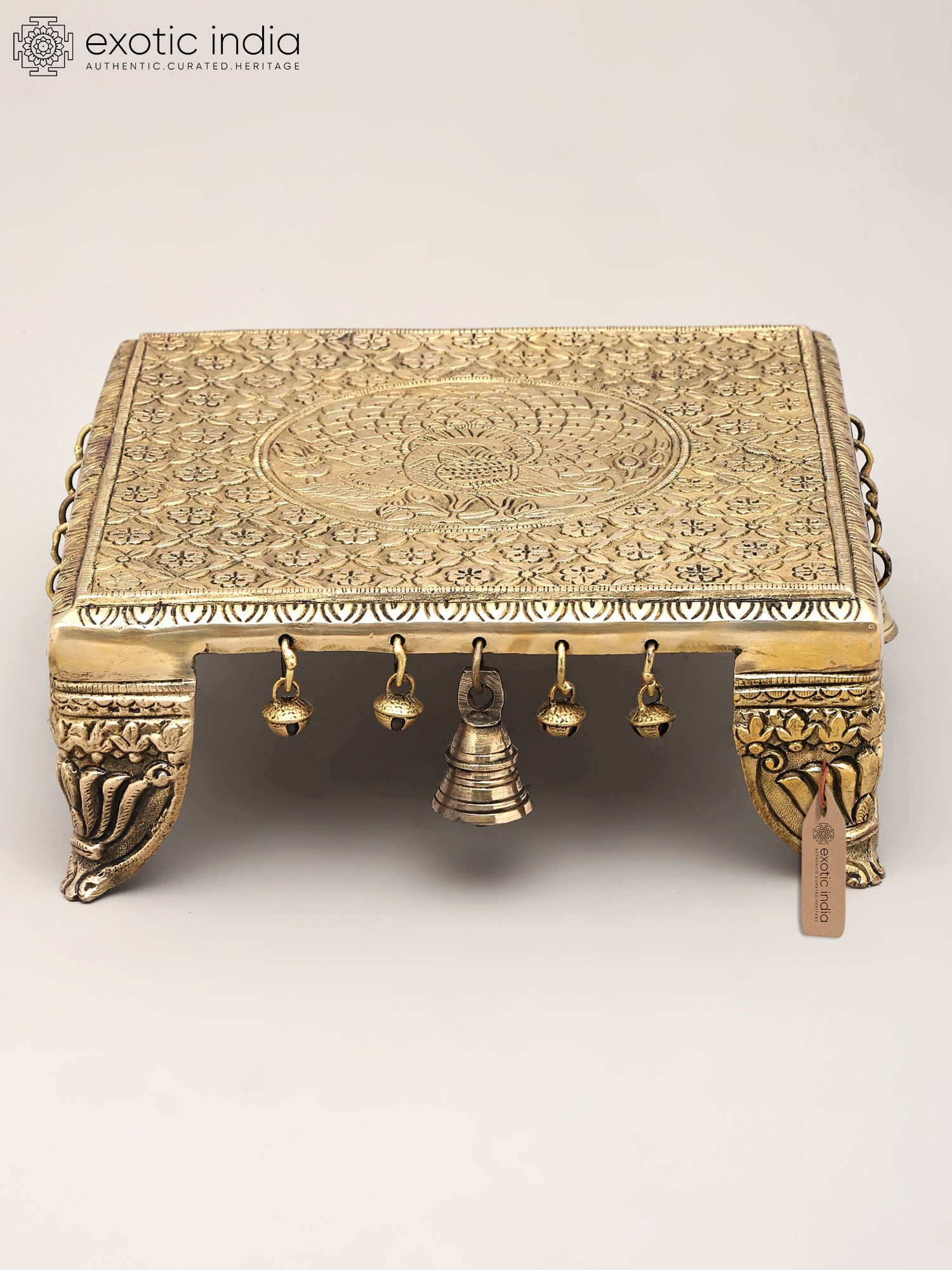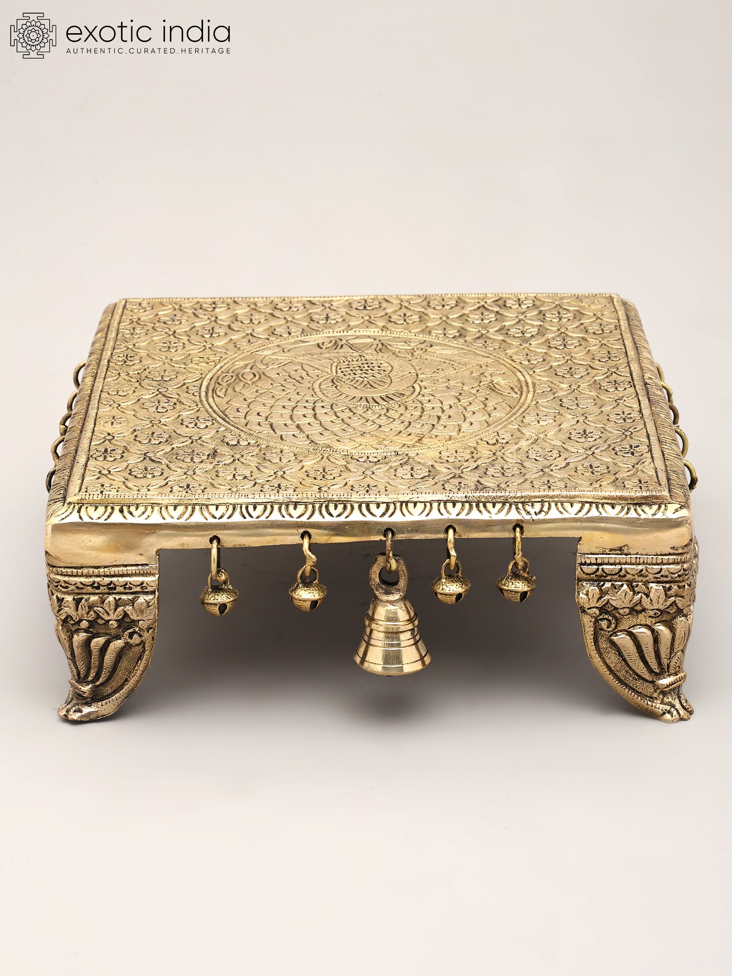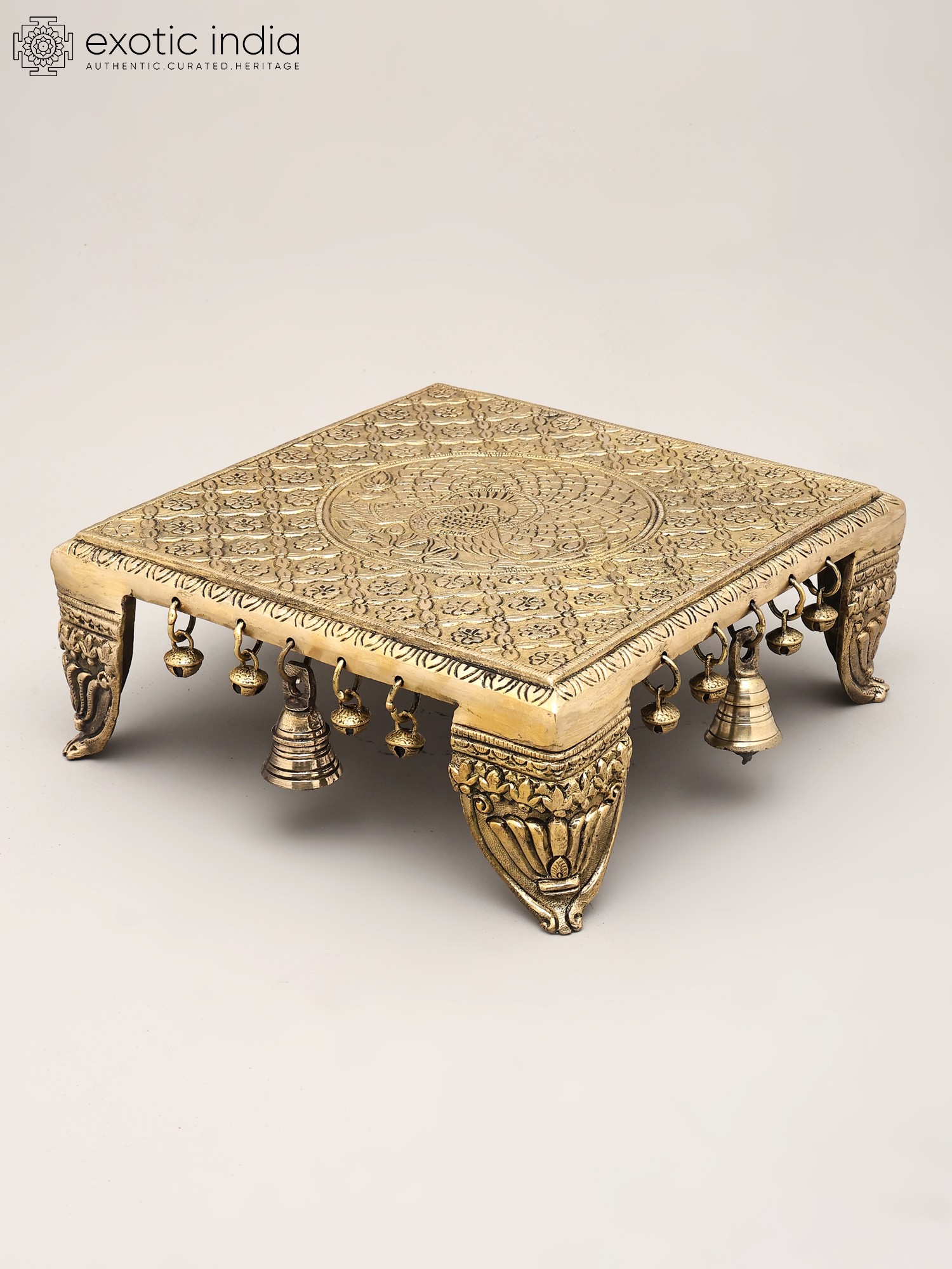 Floral Brass Pedestal (Chowki) with Bells
