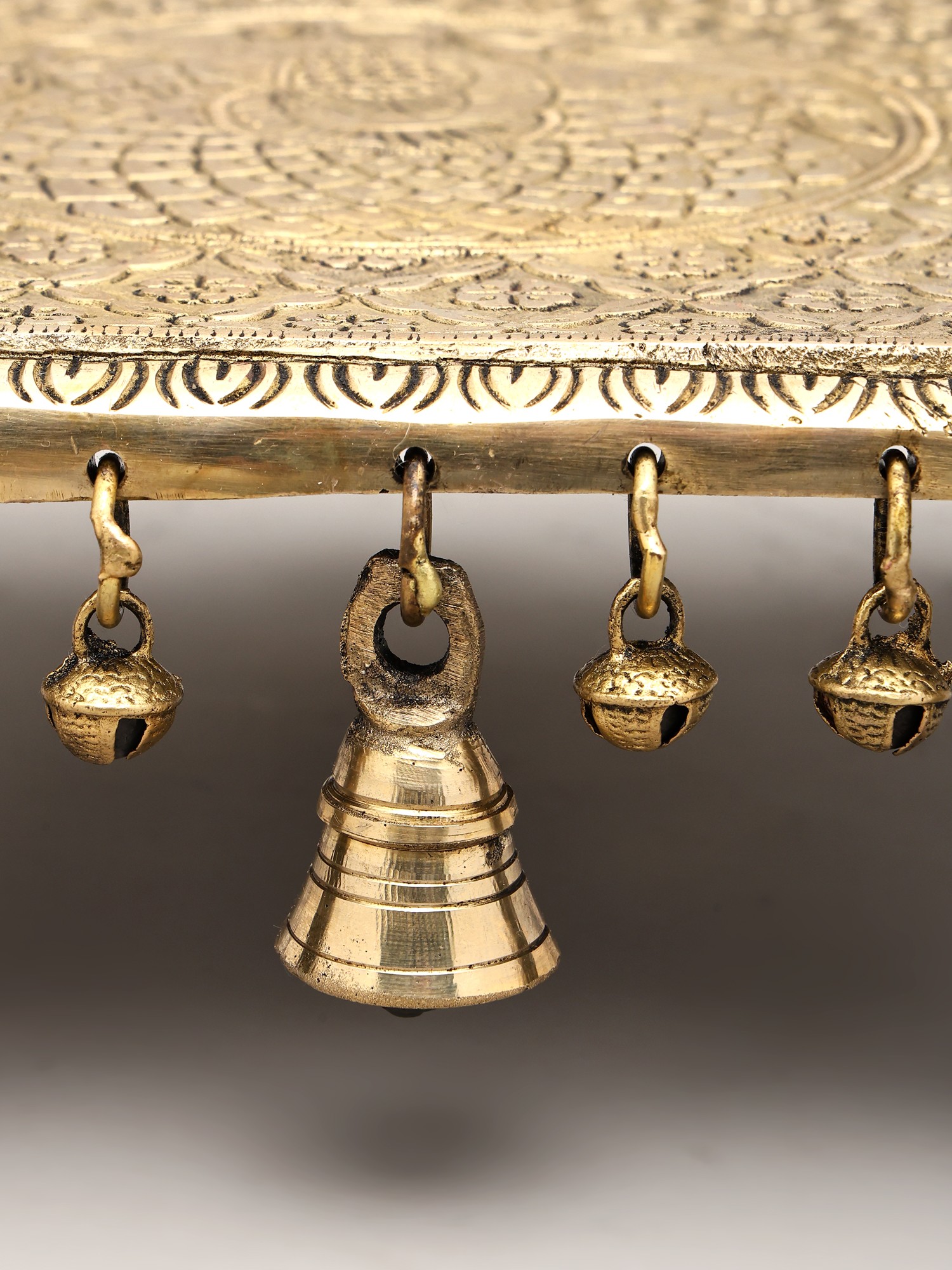 12" Brass Round Pedestal (Chowki) with Dangling Bells
