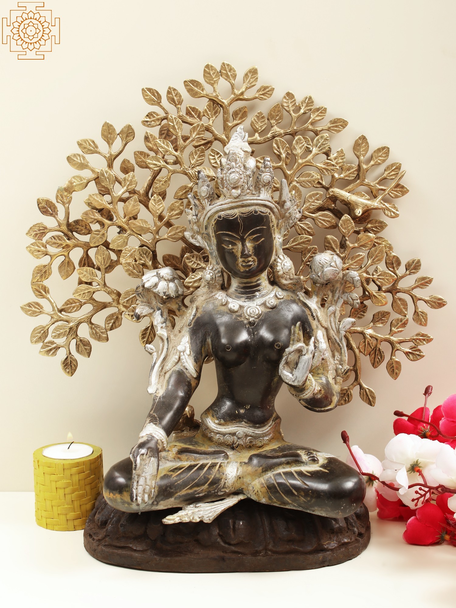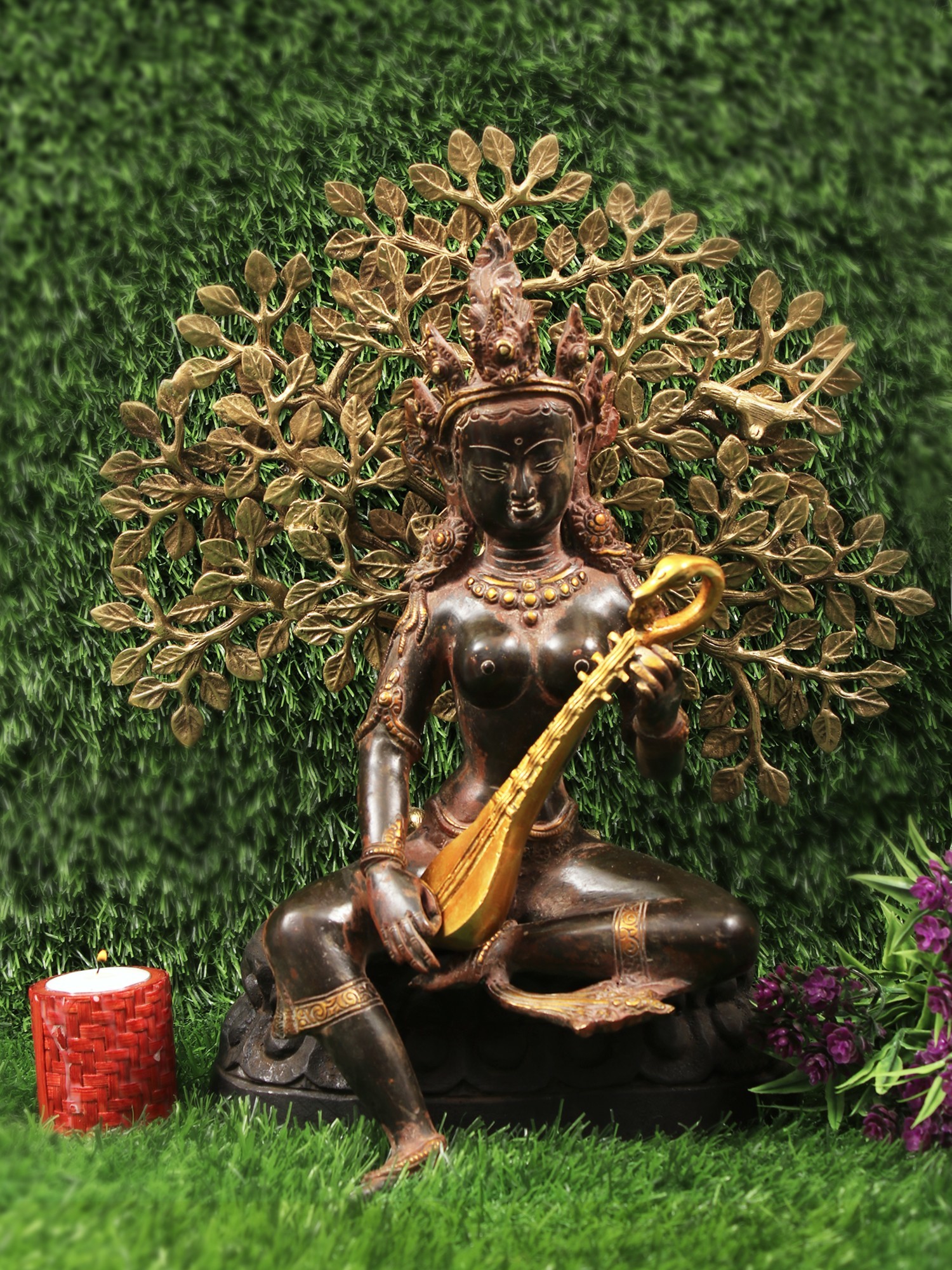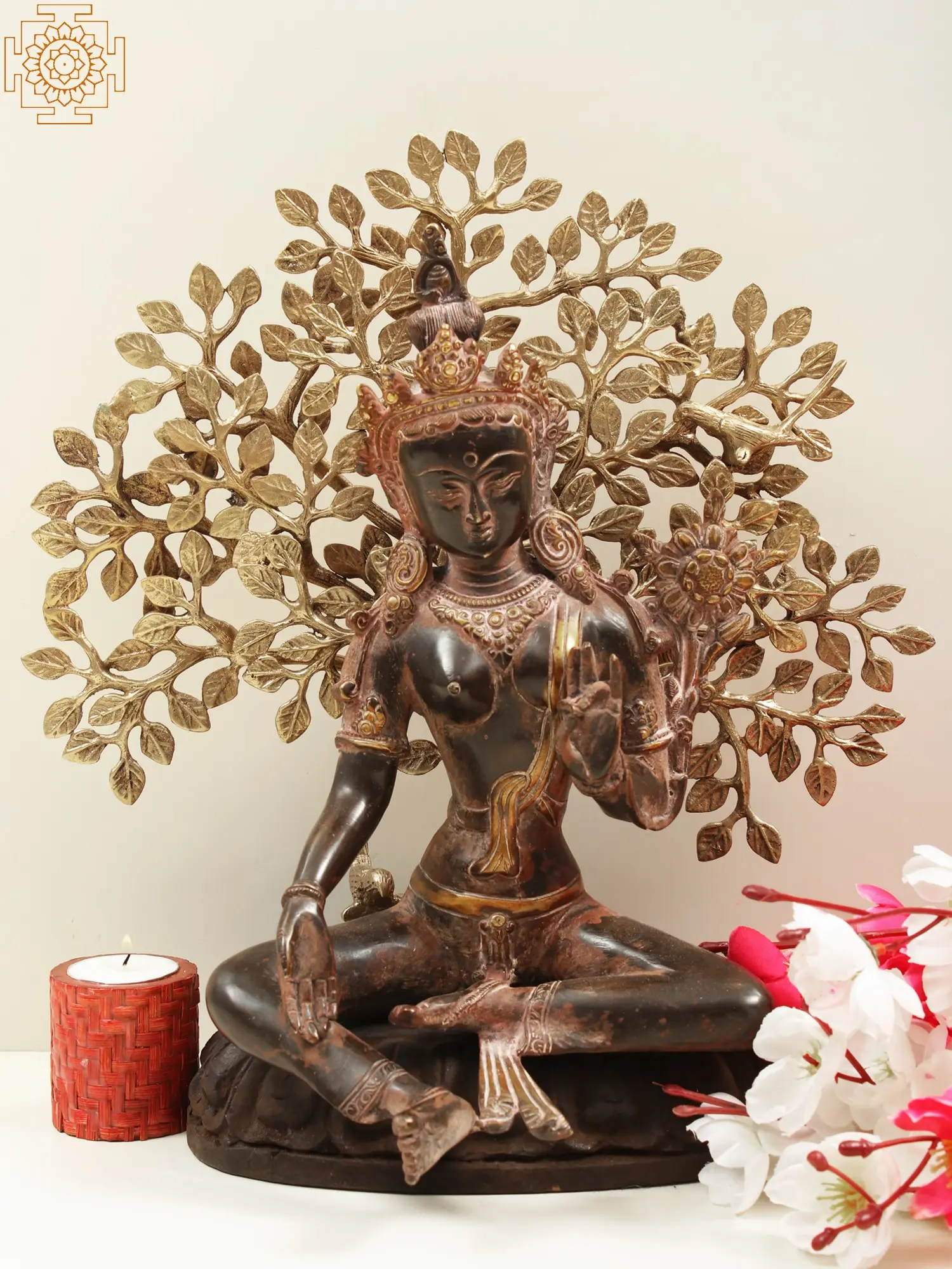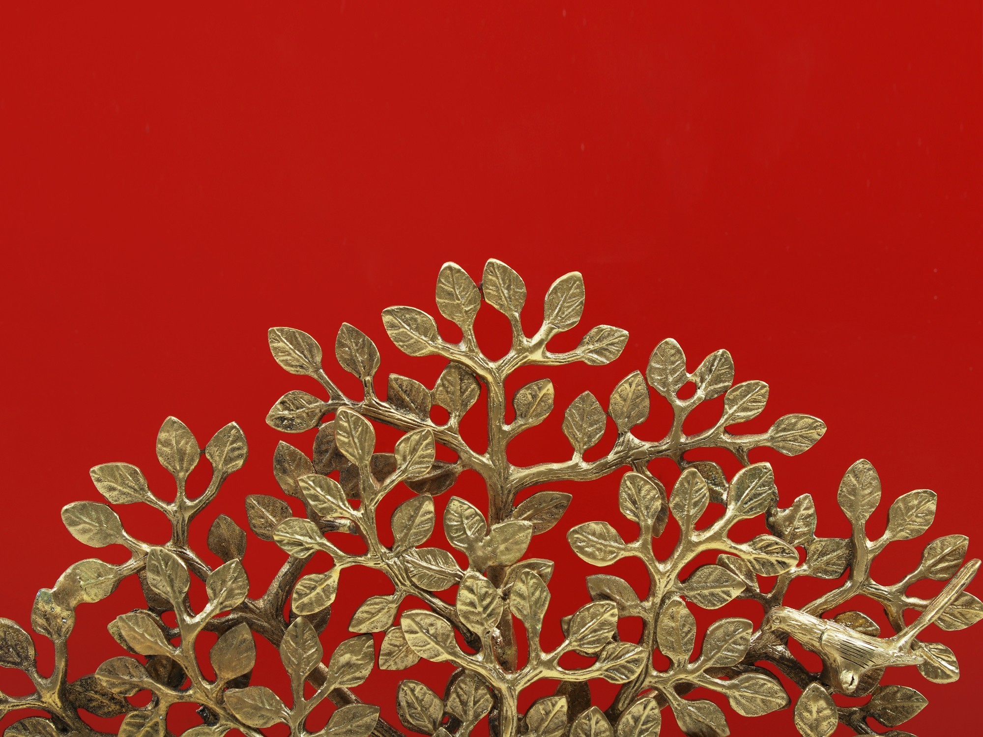 This small brass tree resembling a Plumeria tree or Gour Champa tree, is a simple yet elegant depiction of the beautiful being of a silent tree. The Plumeria or Gour Champa is an auspicious flower generally found in graveyards for its nature of giving peace. The Plumeria is also used for making essence that cures migraine. This home decor piece of the Gour Champa plant is an auspicious and beautiful addition to a space that will bring peace, harmony and spiritual growth. The depiction of two parrots sitting and playing on the tree is a string that connects the metallic art with the nature. Keeping a small Diya or placing a statue alongside it will not only enhance its beauty but also generate some very pious energies.