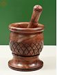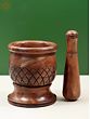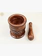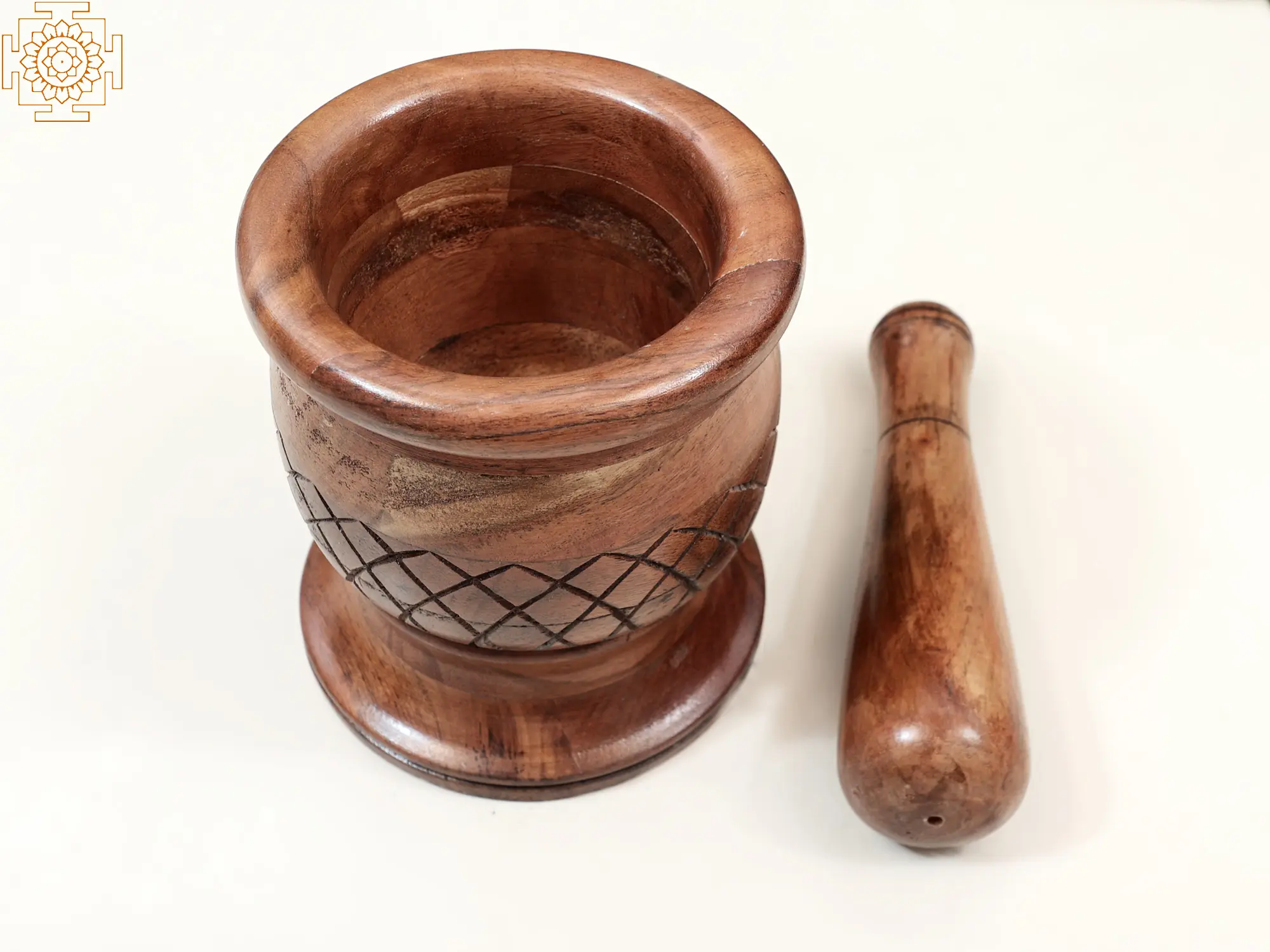 This Wooden Mortar and Pestle Set, is one of the most essential pieces that have helped people achieve culinary heights. Handmade with precision, this set embodies the essence of traditional kitchen tools. Carved from solid wood, its stature exudes both strength and elegance. The meticulous attention to detail in its construction ensures durability and functionality, providing the perfect vessel for grinding and blending spices and herbs. The diamond-shaped engravings on the body give a different dimension to the design. The tactile pleasure of using this set resonates with the authenticity of handmade craftsmanship.