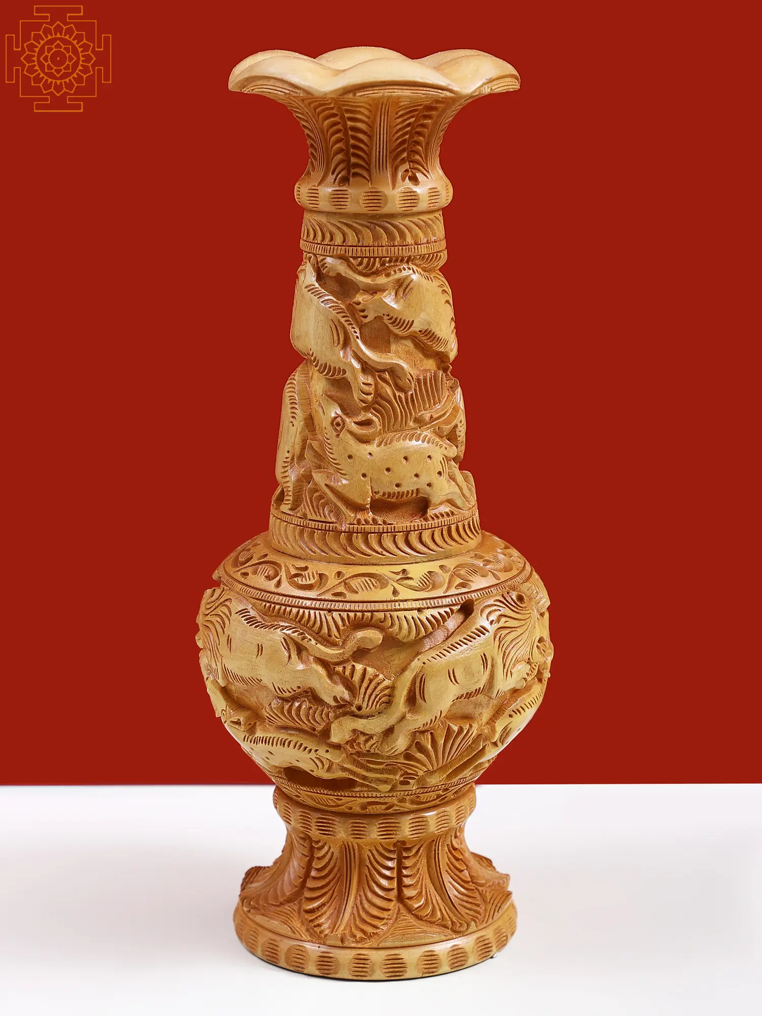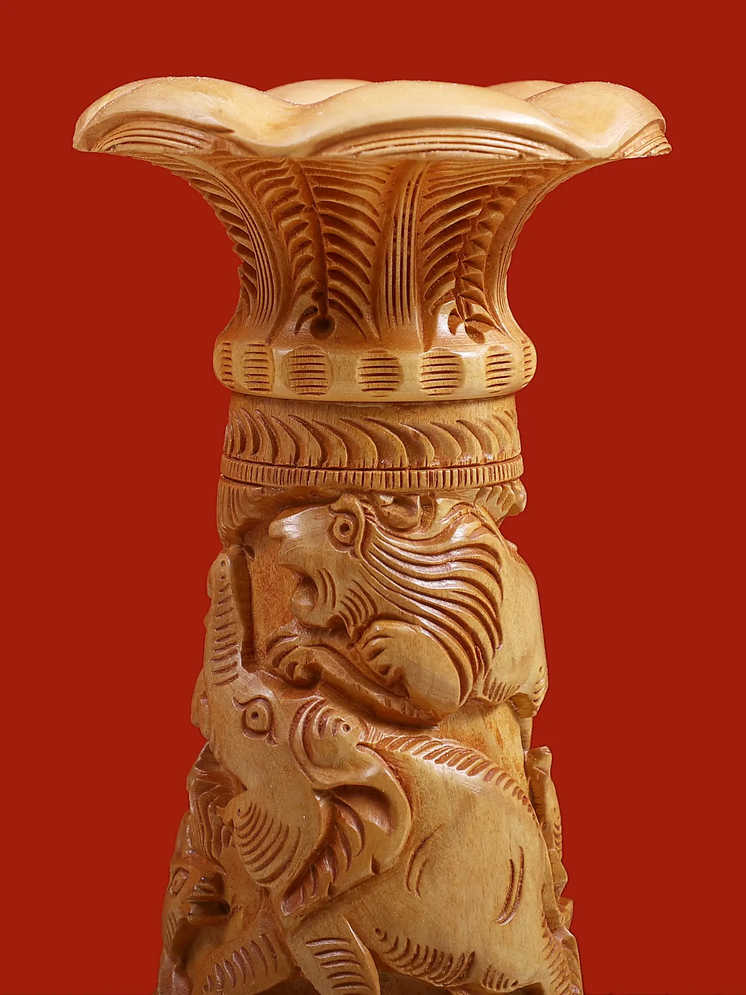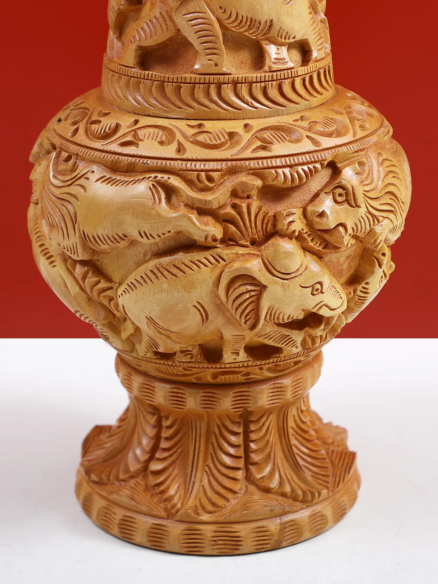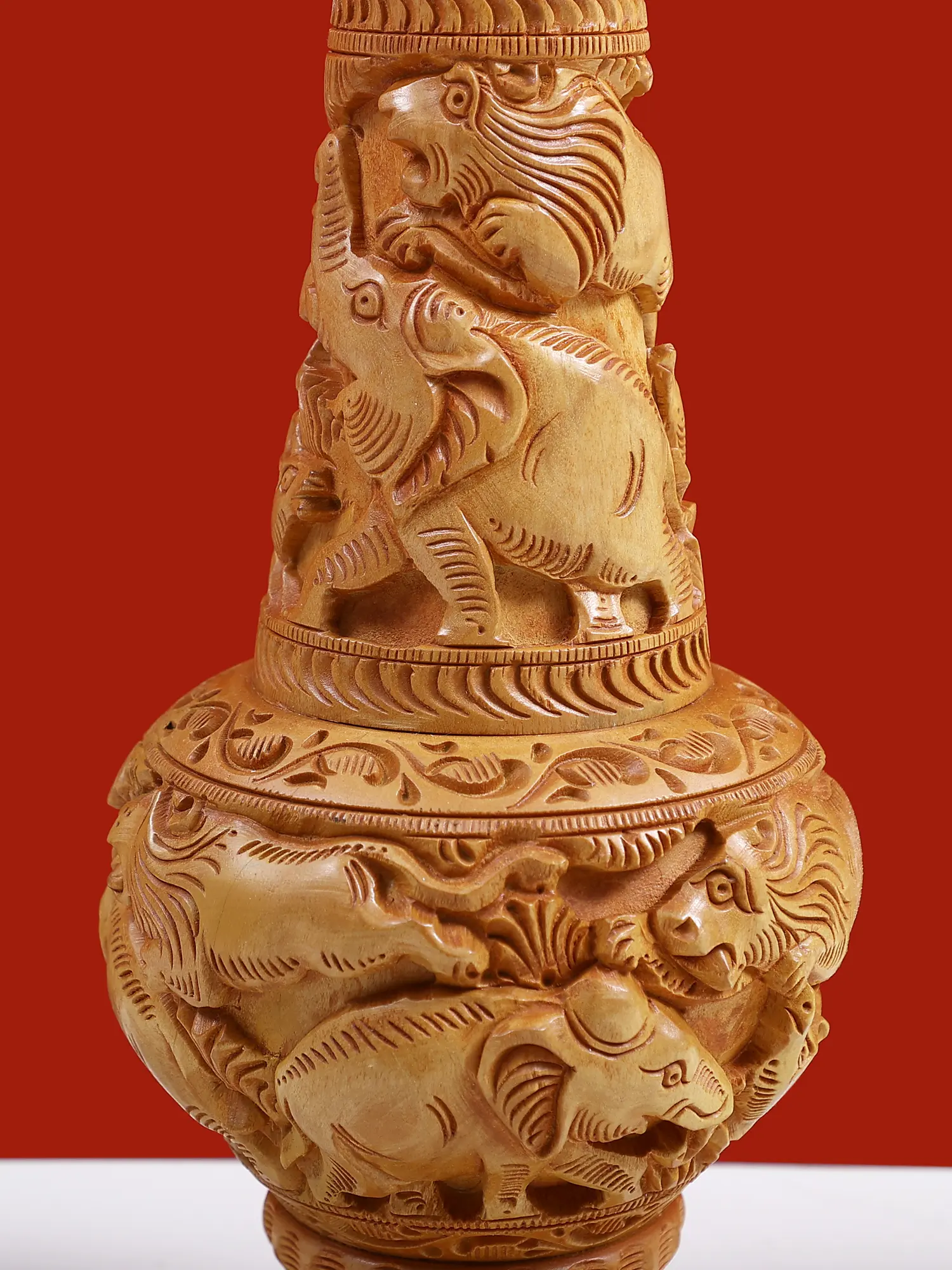 This 11-inch wooden vase with animal carvings is more than just a functional item; it's a statement piece that reflects your unique taste and appreciation for artistry and craftsmanship. It's a conversation starter, an heirloom-quality item, and a beautiful addition to your home decor. Its timeless design ensures that it will remain a cherished piece for years to come, a testament to the enduring power of art and the beauty of nature. Bring home a touch of timeless elegance and exotic charm with this exceptional hand-carved wooden vase.