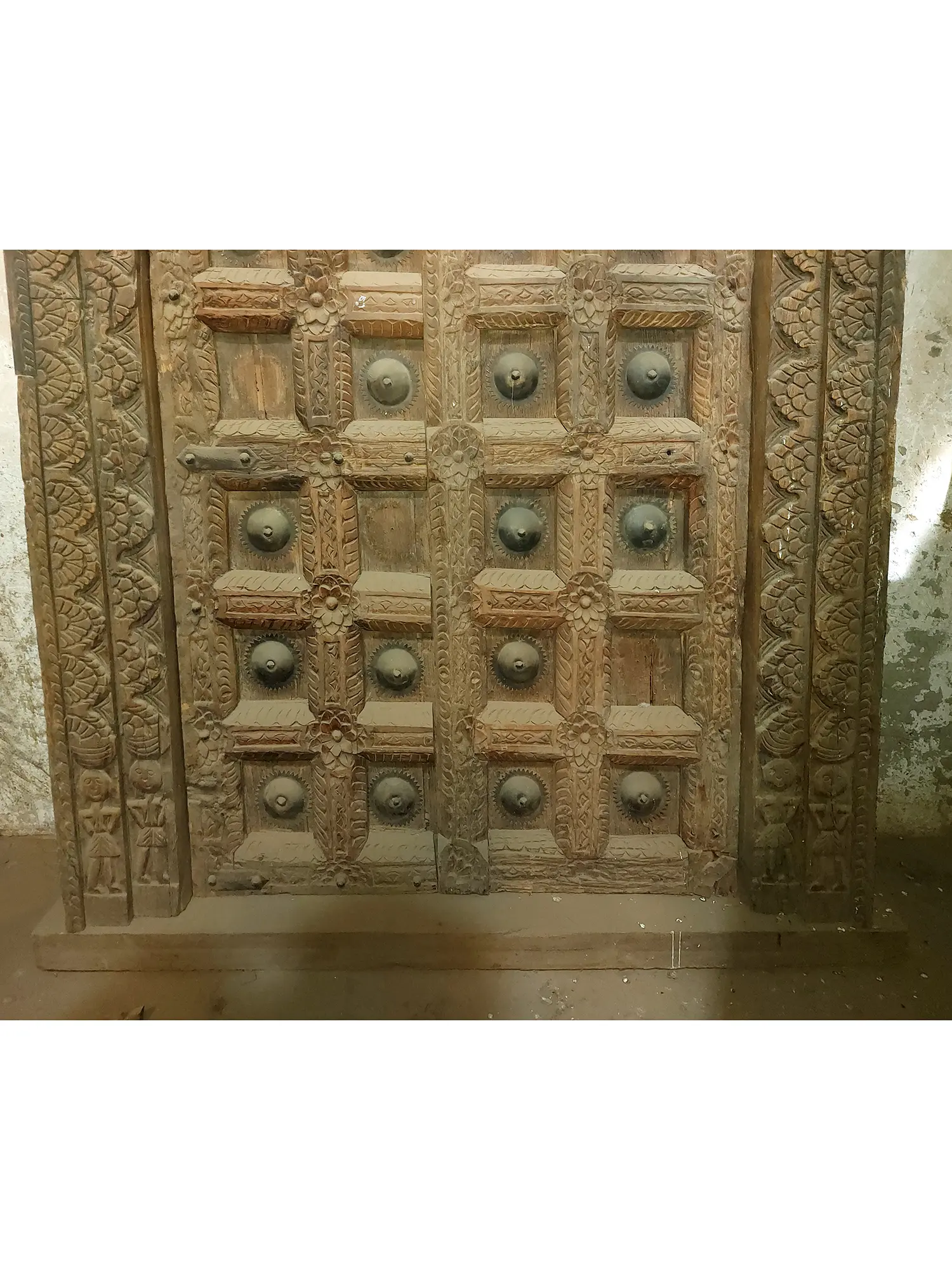 87" Vintage Style Lord Krishna Hand Carved Wood Door