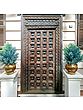 78" Floral Hand Carved And Block Design Wood Door With Vintage Style Knock