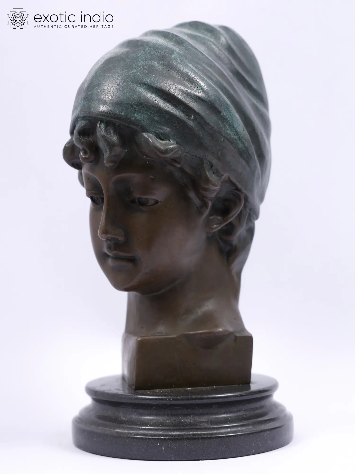This bronze bust of a lady reminds one of the animated faces of the Renaissance period, including the sketches of Leonardo da Vinci, depicting women in various moods.