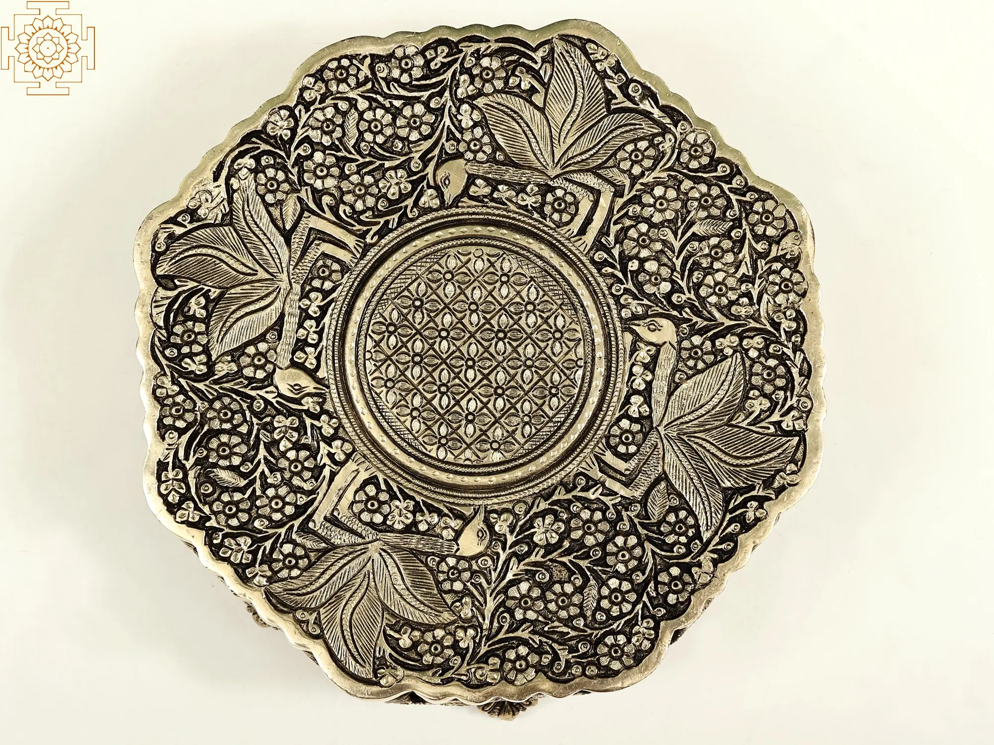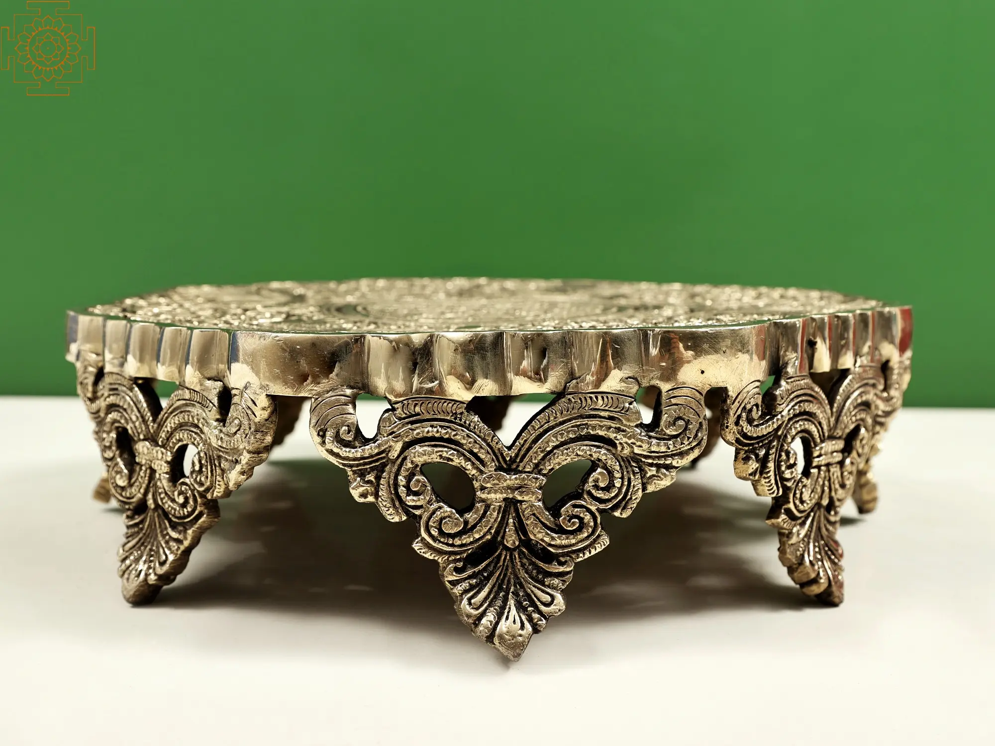 Elevate your home decor with this beautiful (Pedestal) Chowki, adorned with intricate bird and floral designs, capturing the essence of traditional Indian artistry. Crafted in brass, this elegant piece symbolises a sacred space, often used during religious ceremonies, prayers, and auspicious occasions.